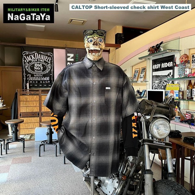 アメリカ LA Down Town発 CALTOP キャルトップ チェック 半袖シャツ ブラック×チャコール 西海岸系 U.S.A. MADE アメカジ