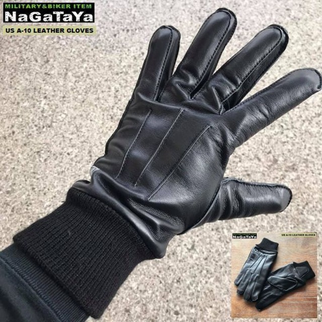 US軍スタイル A-10 軍用 レザーグローブ ヤギ革 裏フリース素材 ウールリブ付 防寒仕様 S/M/Lsize