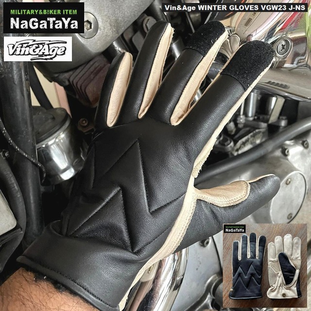 Vin&Age ヴィンアンドエイジ VGW23 J-NS EARLY WINTER GLOVES 牛革 ウインターグローブ ジャジッドパターン手袋 バイカーグローブ