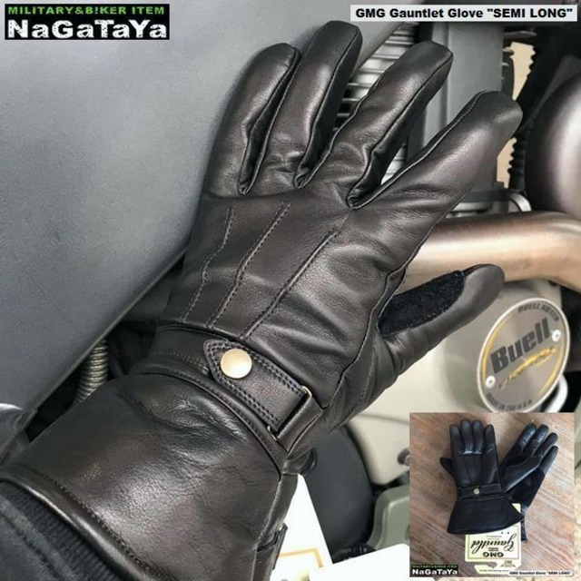 GMG Gauntlet Glove SEMI LONG ジーエムジー ガントレットグローブ セミロング カウハイドレザー BIKERグラブ ブラック 黒