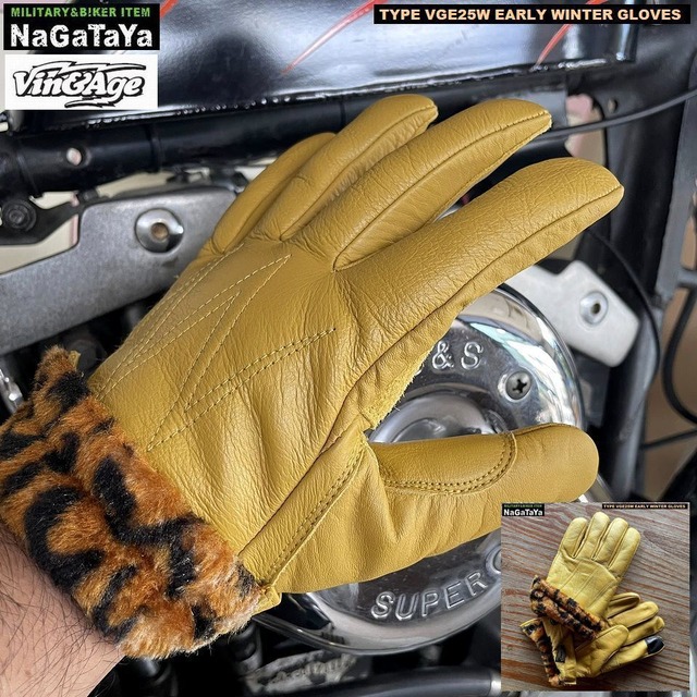 Vin&Age ヴィンアンドエイジ TYPE VGE25W アーリー ウィンター グローブ キャメル 裏ボアレオパード柄