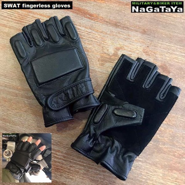 SWAT スワット フィンガレス グローブ プロテクターパット付 グローブ ブラック レザー 革 ハーフフィンガー