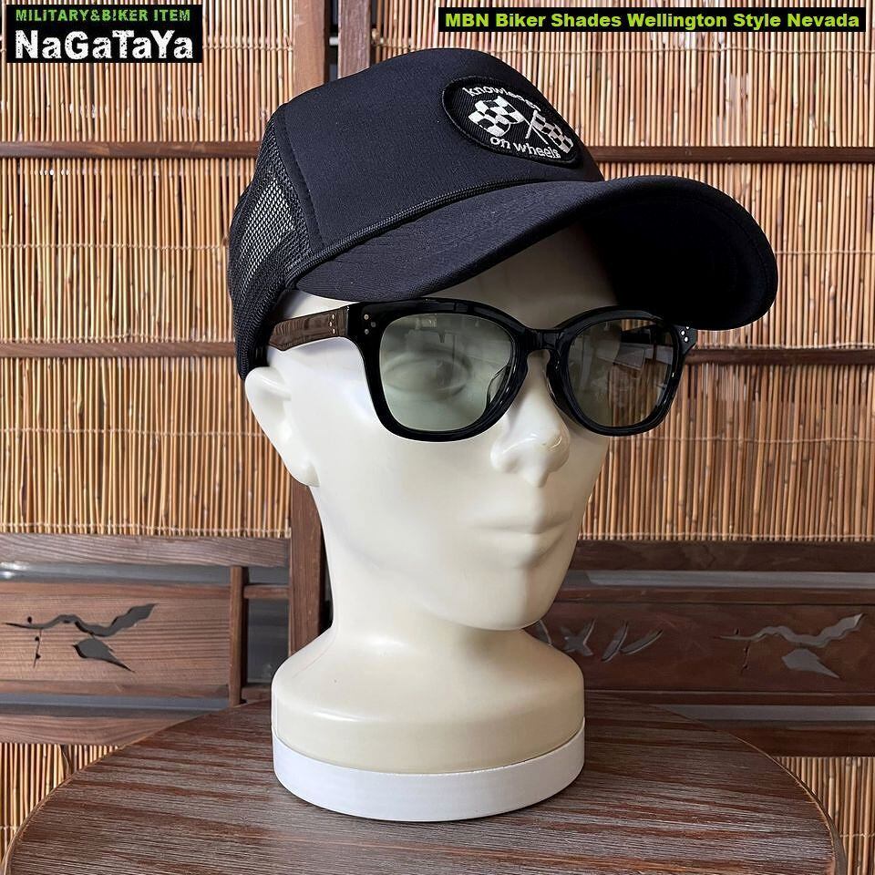 ★MBN バイカーシェード ウエリントンスタイル ネバダ ブラック×ライトグリーン セルフレーム 54-806 モーターサイクル アイウェア ハードケース付