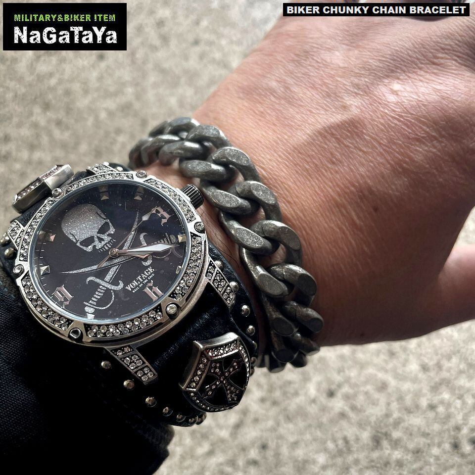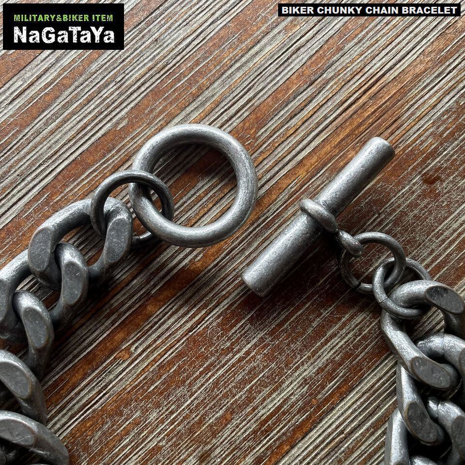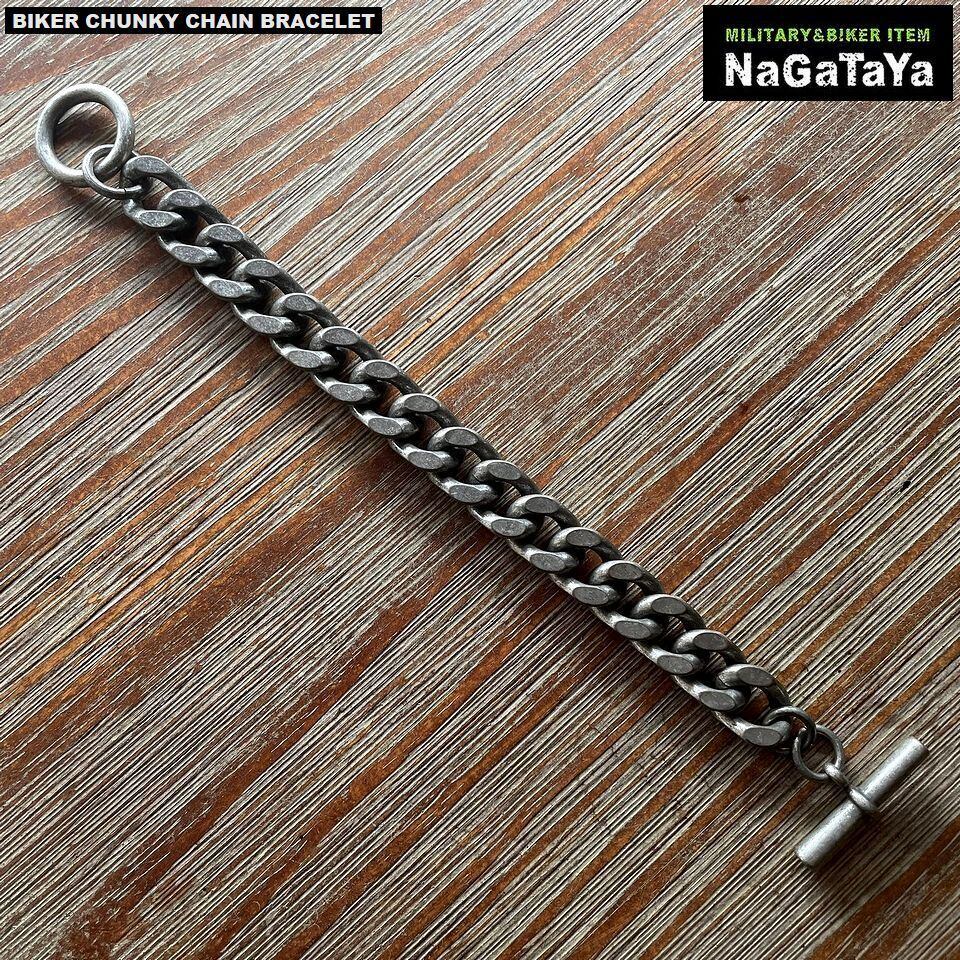 ■重量感・存在感抜群の太めキヘイチェーン&マンテルを使用した、BIKERチャンキーチェーンブレスレット。アクセサリーをコーデの主役級に演出するヘビーゲージなサイズ感。バイカースタイル、ストリートスタイル、ロックスタイル、モードなスタイルまでコーデを格上げしてくれるデザインです。