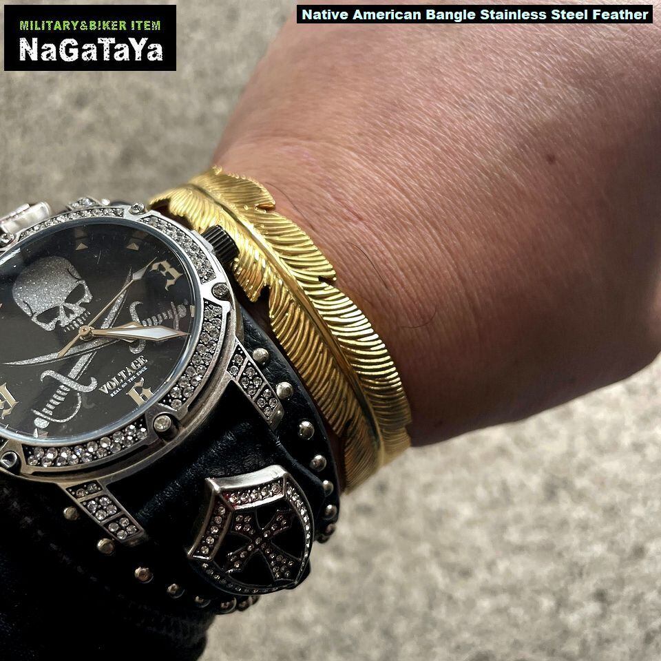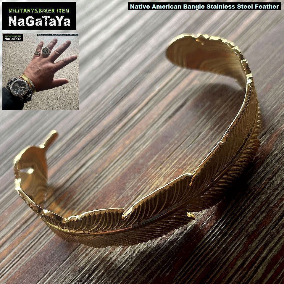 ■ネイティブアメリカン ステンレス スチール フェザー バングル GSSB-015AB GOLD /SILVERフリーサイズ