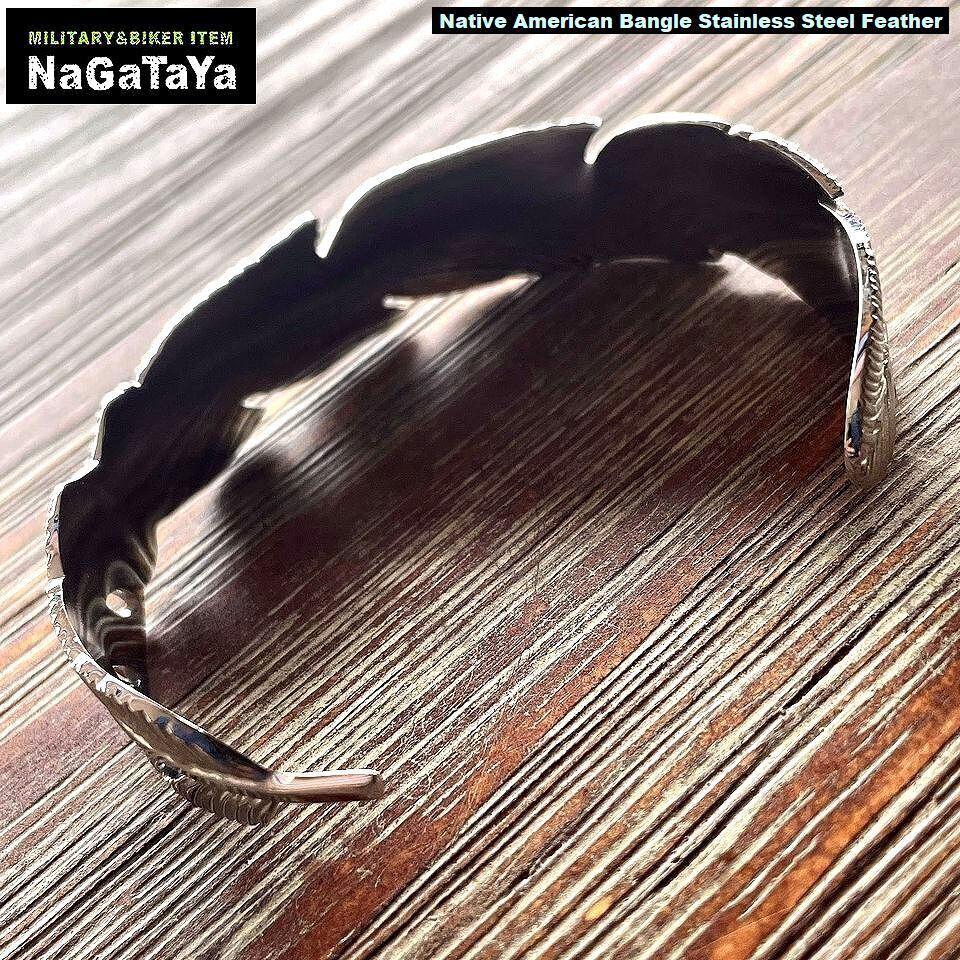 ネイティブアメリカン ステンレス スチール フェザー バングル GSSB-015AB GOLD /SILVERフリーサイズ