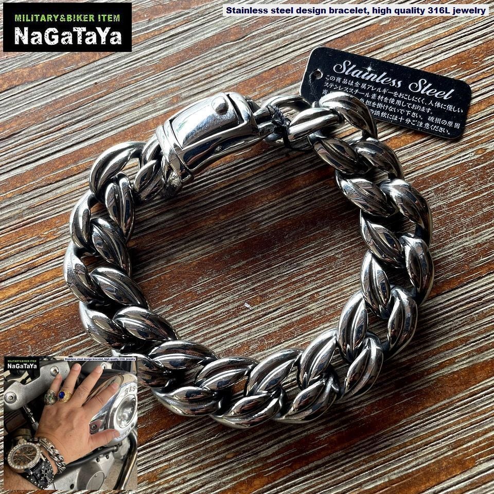 ■Silver925ジュエリーに勝るとも劣らない美しい造形と重量感を備えたステンレス製ブレスレットです。デザイナーズジュエリーブランドのような細部まで拘ったディテールで、ジュエリーとしての確かな存在感と重量感があります。