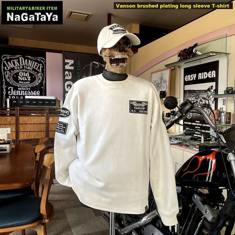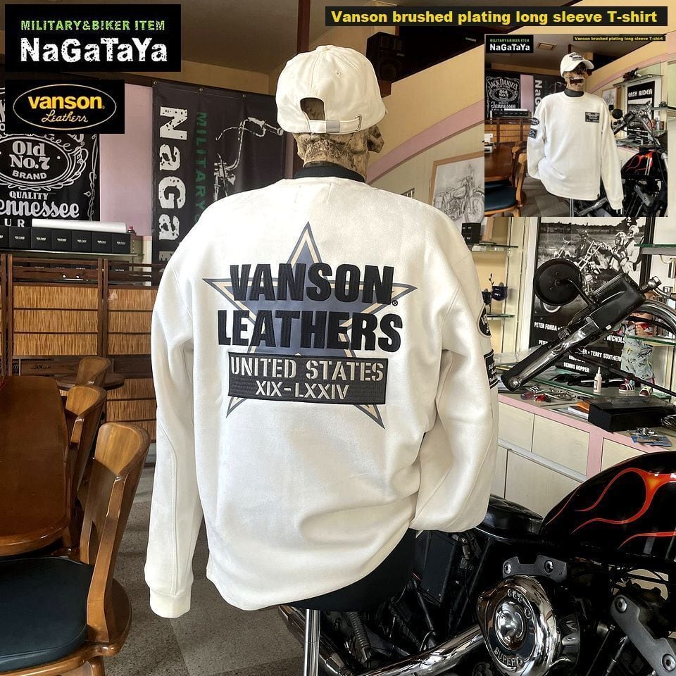 ★VANSON バンソン ロゴ刺繍 起毛プレーティング 長袖Tシャツ メンズ NVLT-2515 アメカジ バイカー ロック ストリート ルード