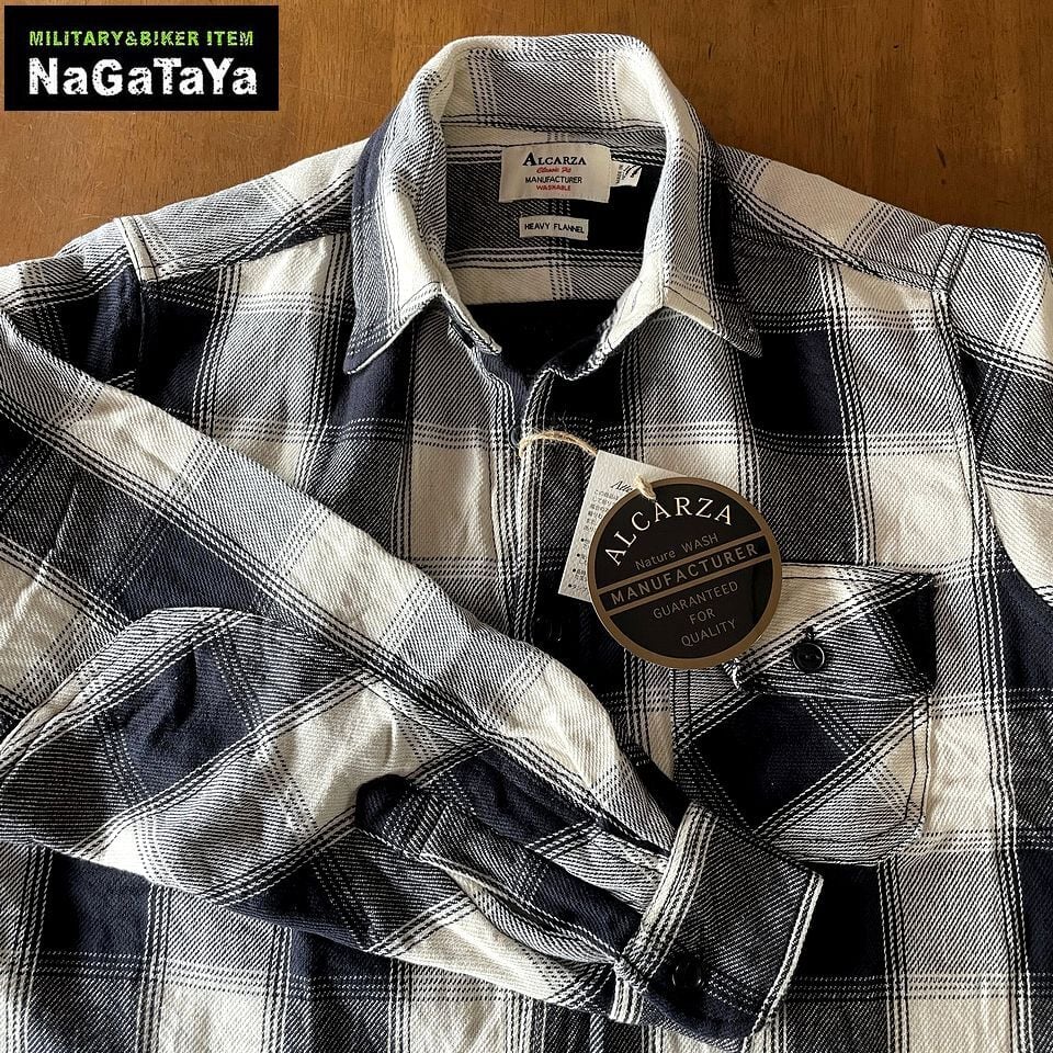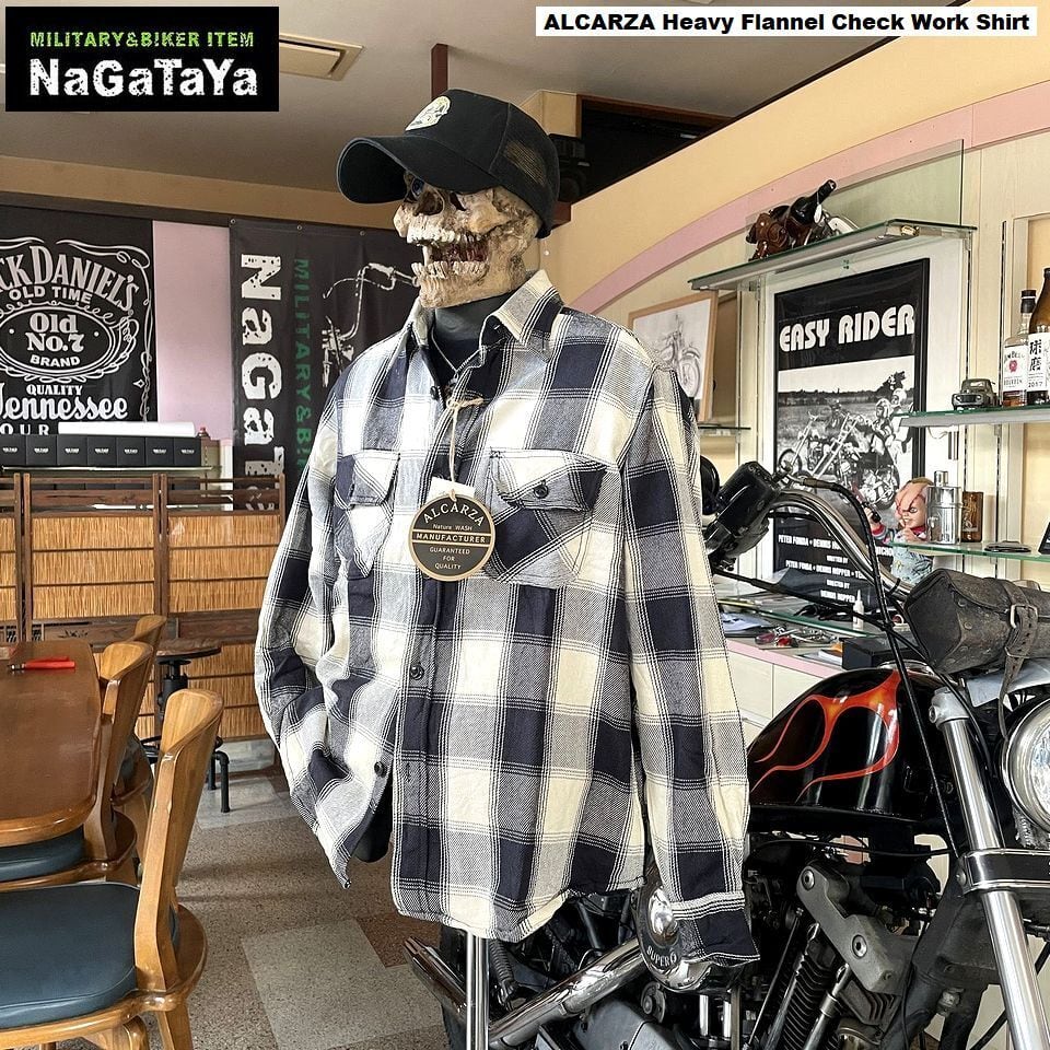 ALCARZA アルカーザ ヘビーネルチェック ワークシャツ オンブレチェック柄 ブラック×ホワイト アメカジ バイカー ストリート
