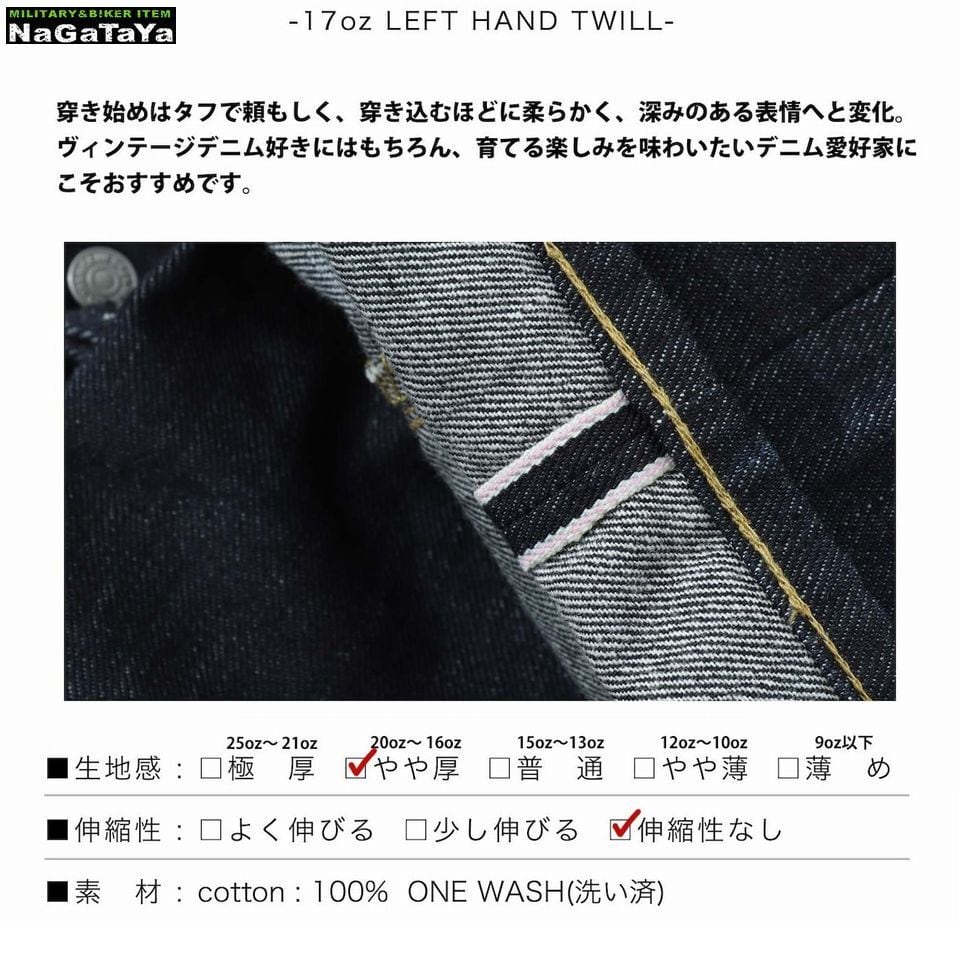 ★児島ジーンズ KOJIMA GENES 17oz 左綾セルビッチ カウボーイストレート ワイドシルエット RNB1401 日本製 MADE IN JAPAN