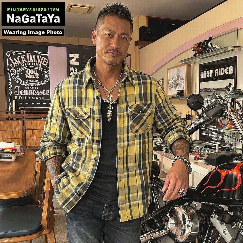 ALCARZA アルカーザ ヘビーフランネルシャツ タータンチェック柄 イエロー系 ワークシャツ アメカジ バイカー ストリート