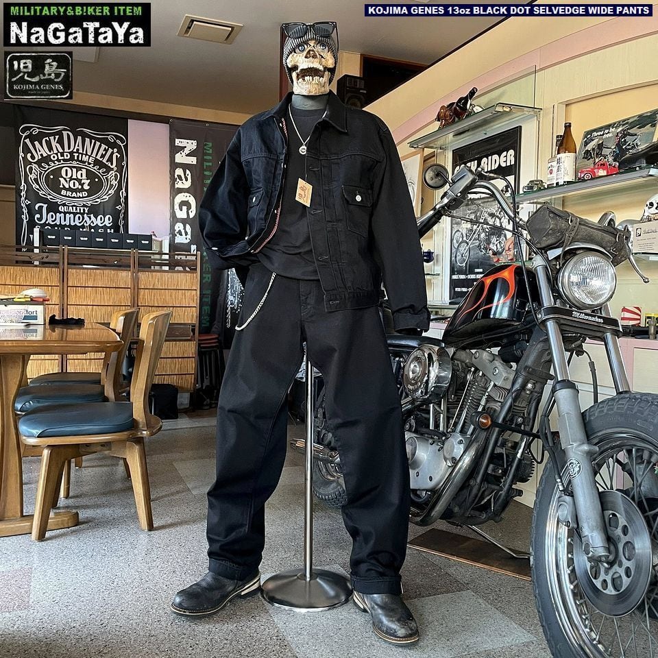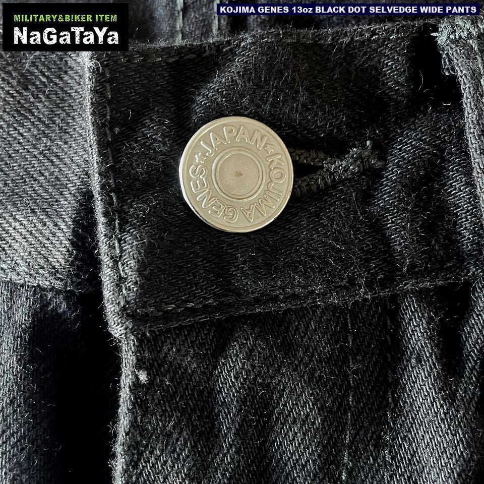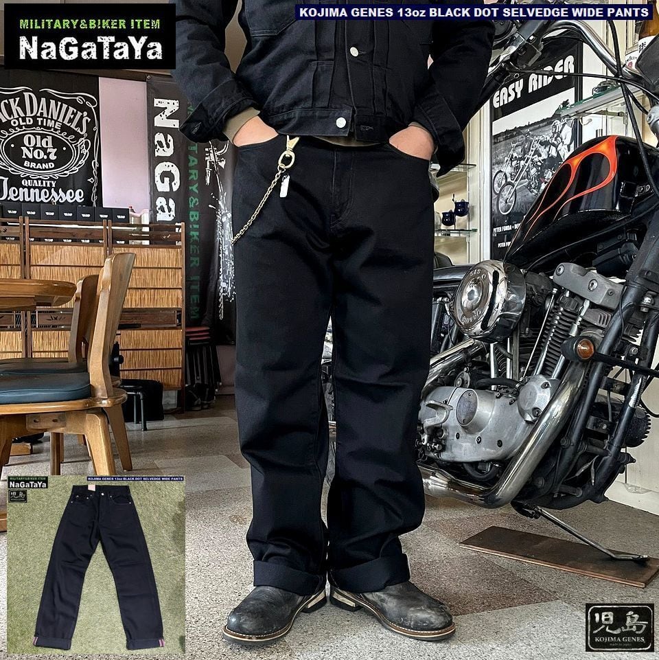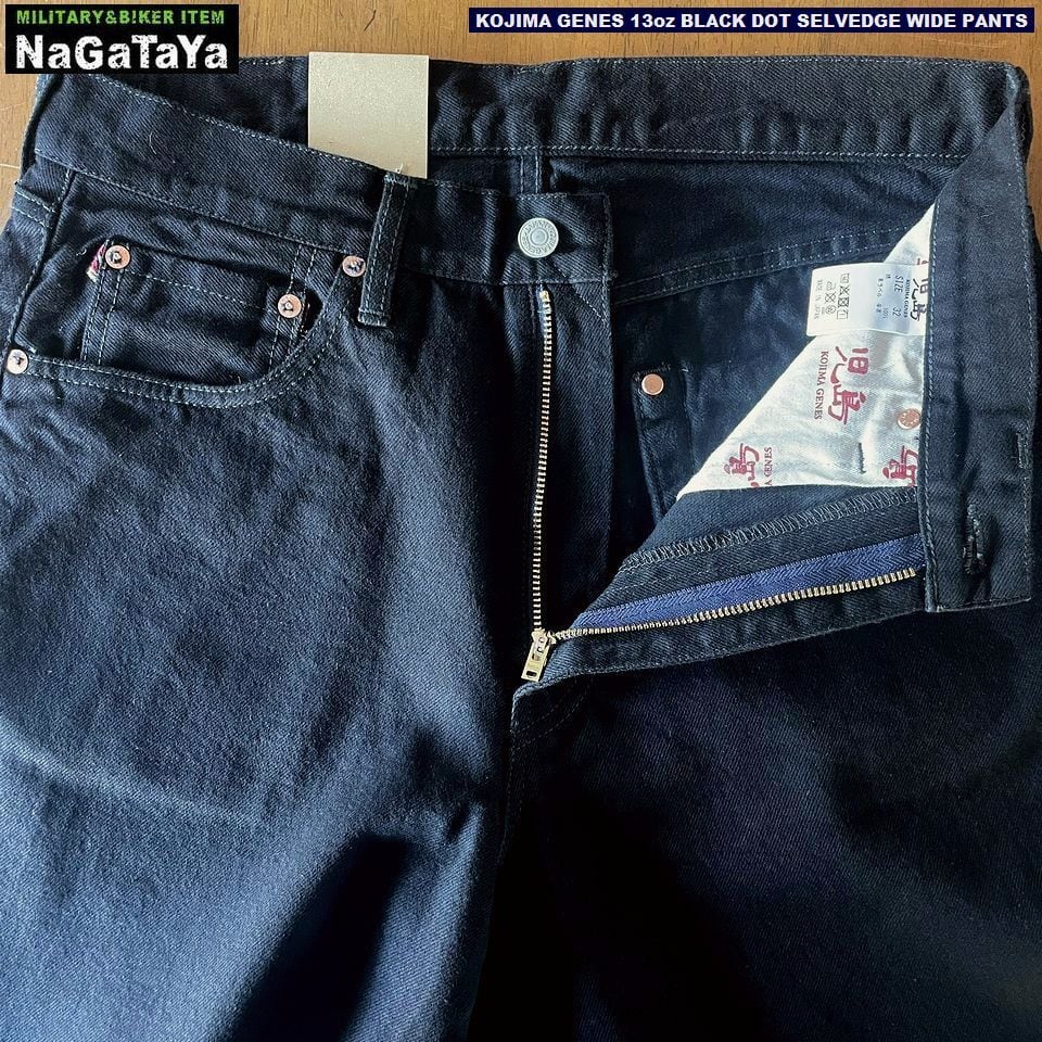 ★児島ジーンズ KOJIMA GENES 13oz セルビッチ ブラック ドット セルビッチ ワイド パンツ rnb1412 日本製 MADE IN JAPAN