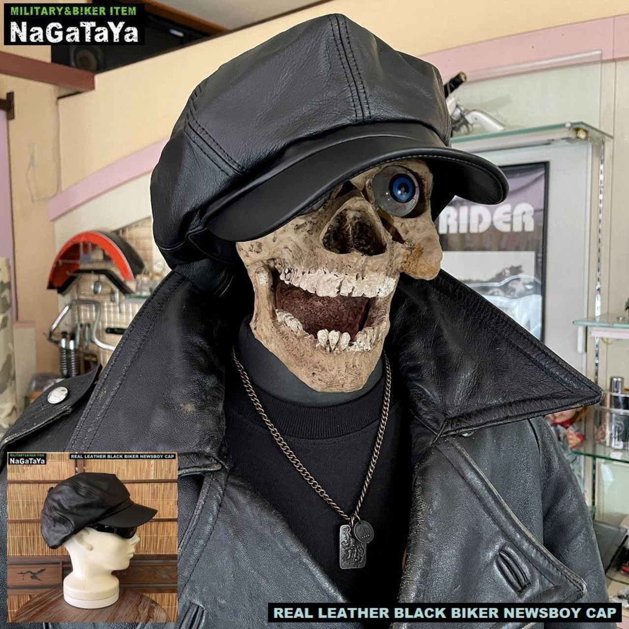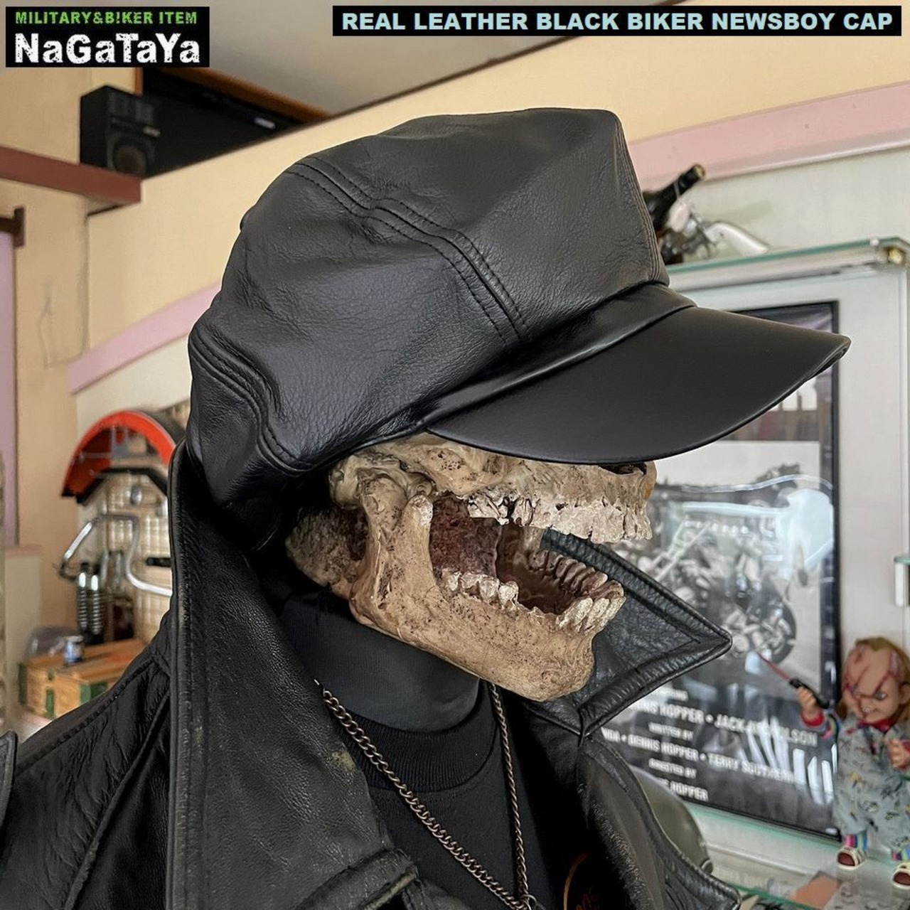 ■本革を使用した、BIKERスタイルのモーターサイクルキャップです。キャスケットスタイルとしてもOK!!