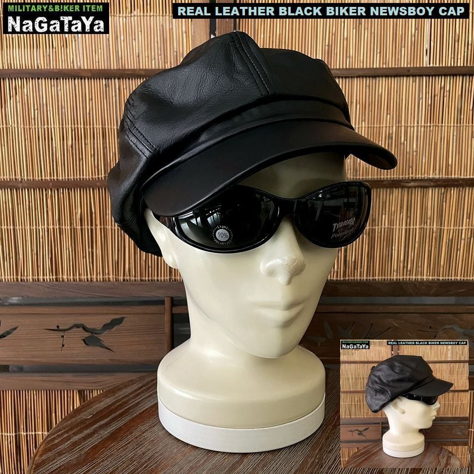 ※本革 キャスケット モーターサイクルキャップ ブラック メンズファッション 通販 バイカースタイル アメカジ ROCK ロック パンク