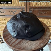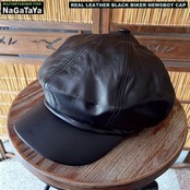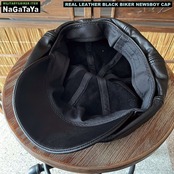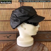 本革 BIKER モーターサイクルキャップ キャスケット リアルレザー ブラック 黒 レギュラーサイズ/ビッグサイズ