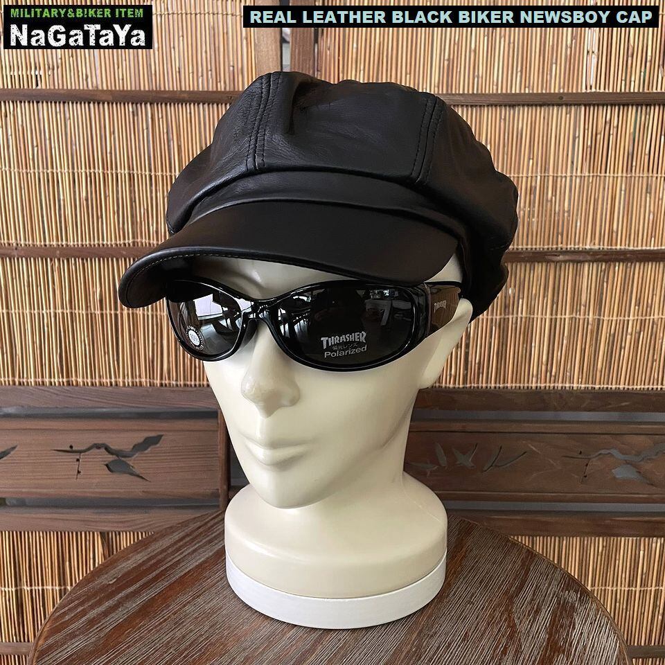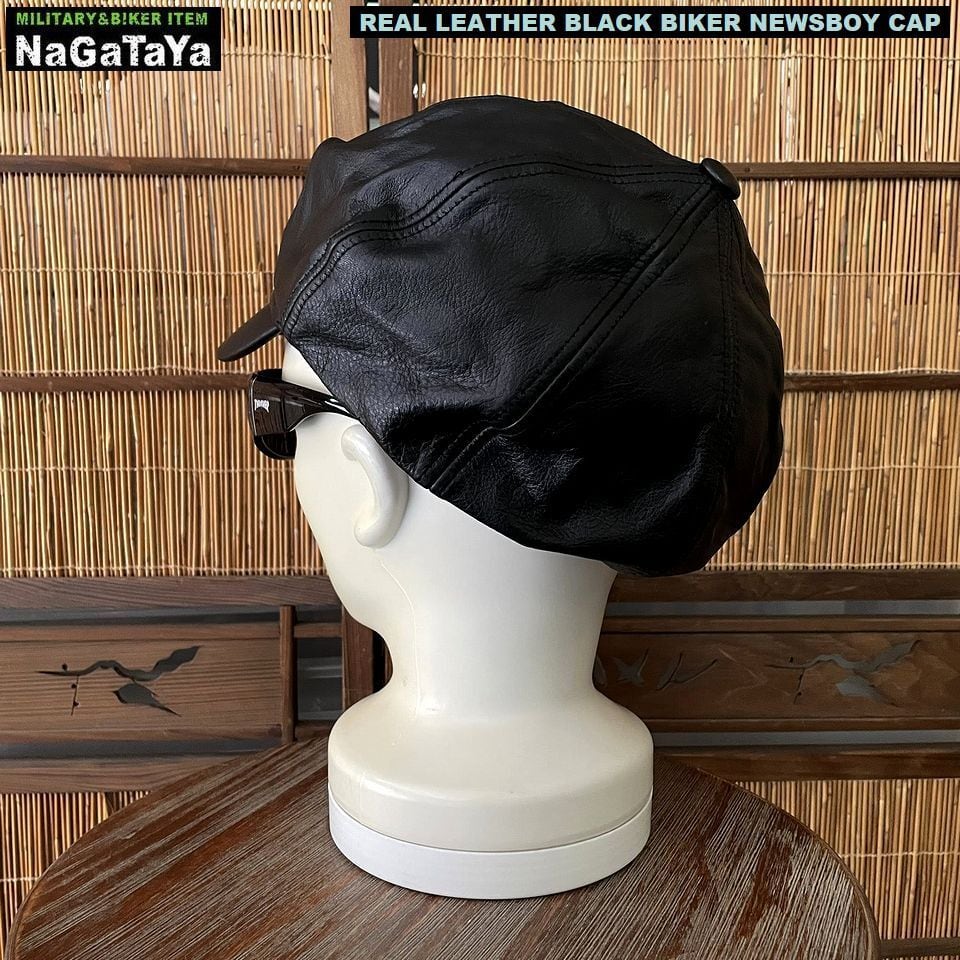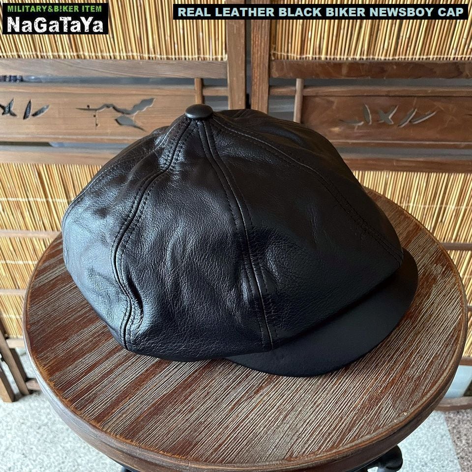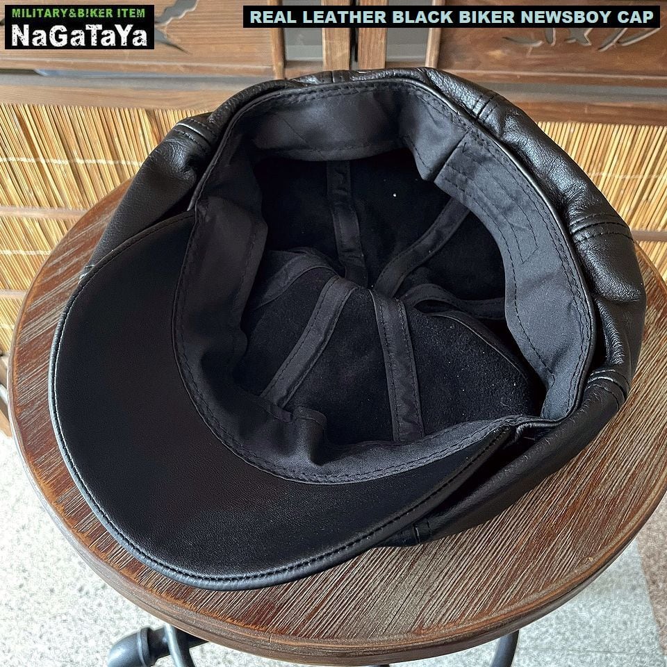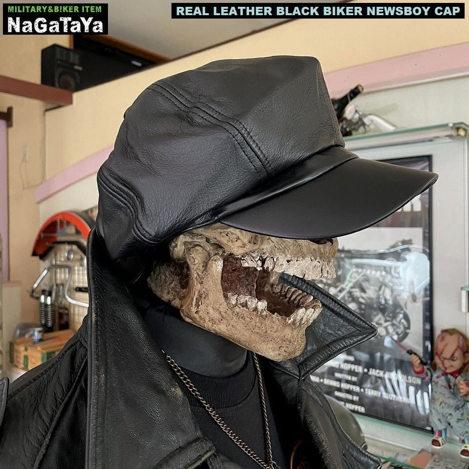 ★本革 BIKER モーターサイクルキャップ キャスケット リアルレザー ブラック 黒 レギュラーサイズ /ビッグサイズ
