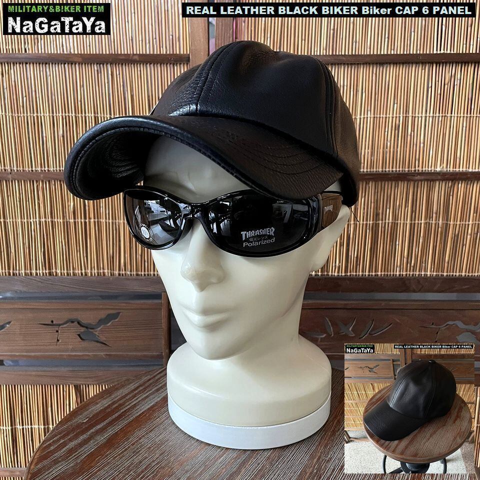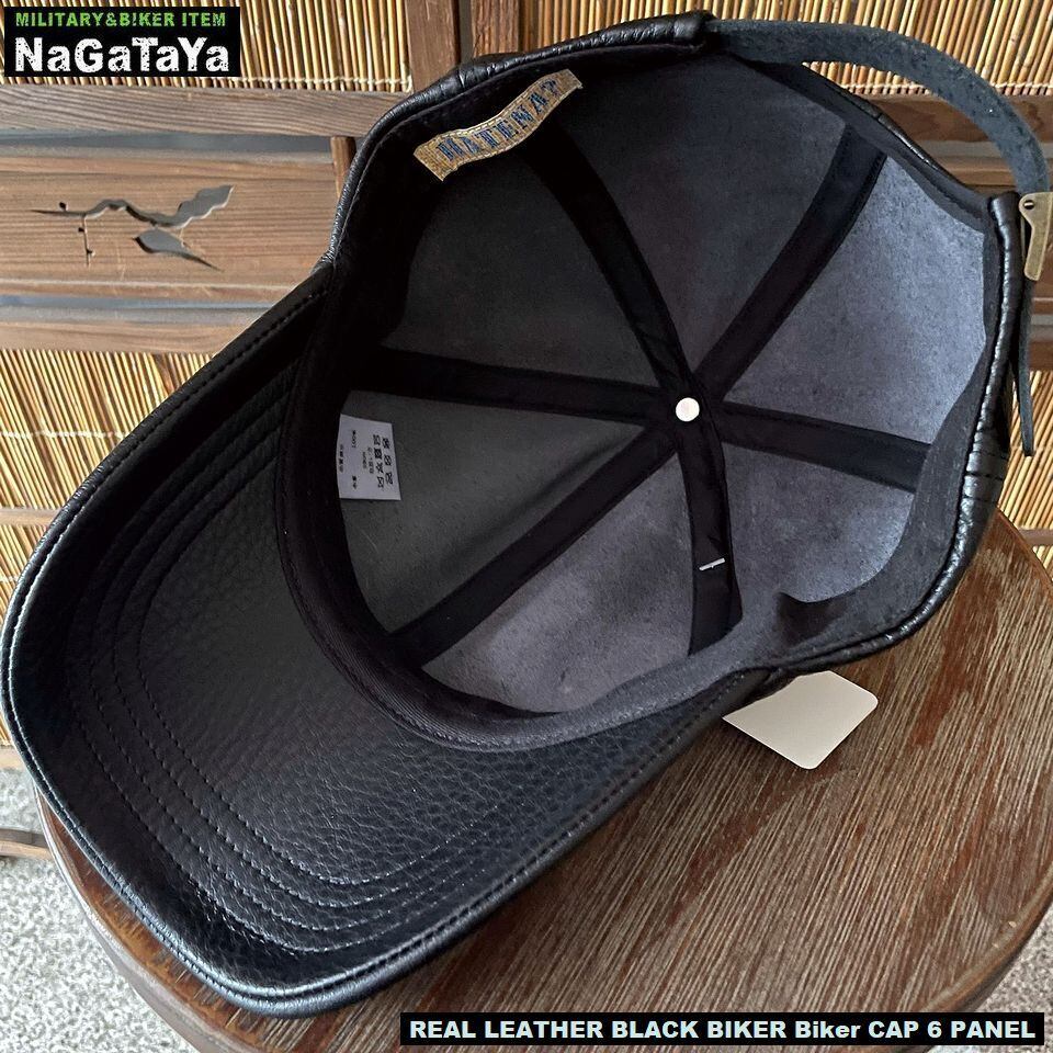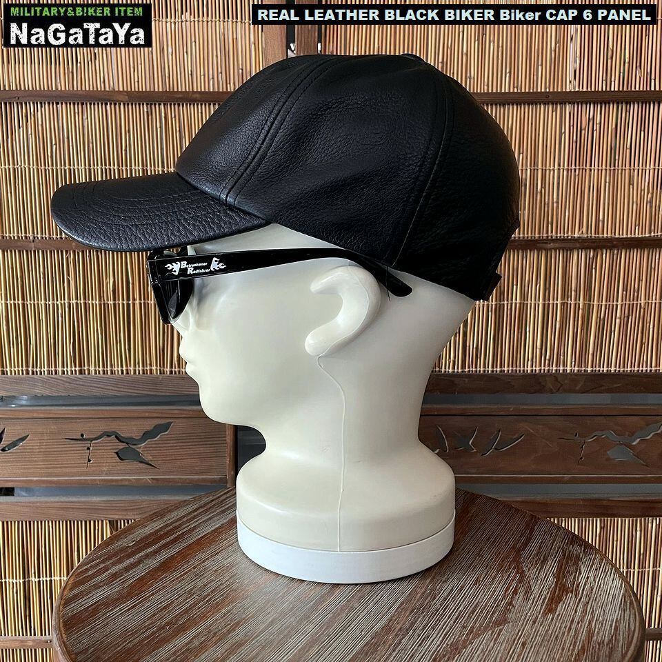 本革 BIKER バイカーシックスパネル キャップ リアルレザー ブラック レギュラーサイズ 調節可能 約56~59cm