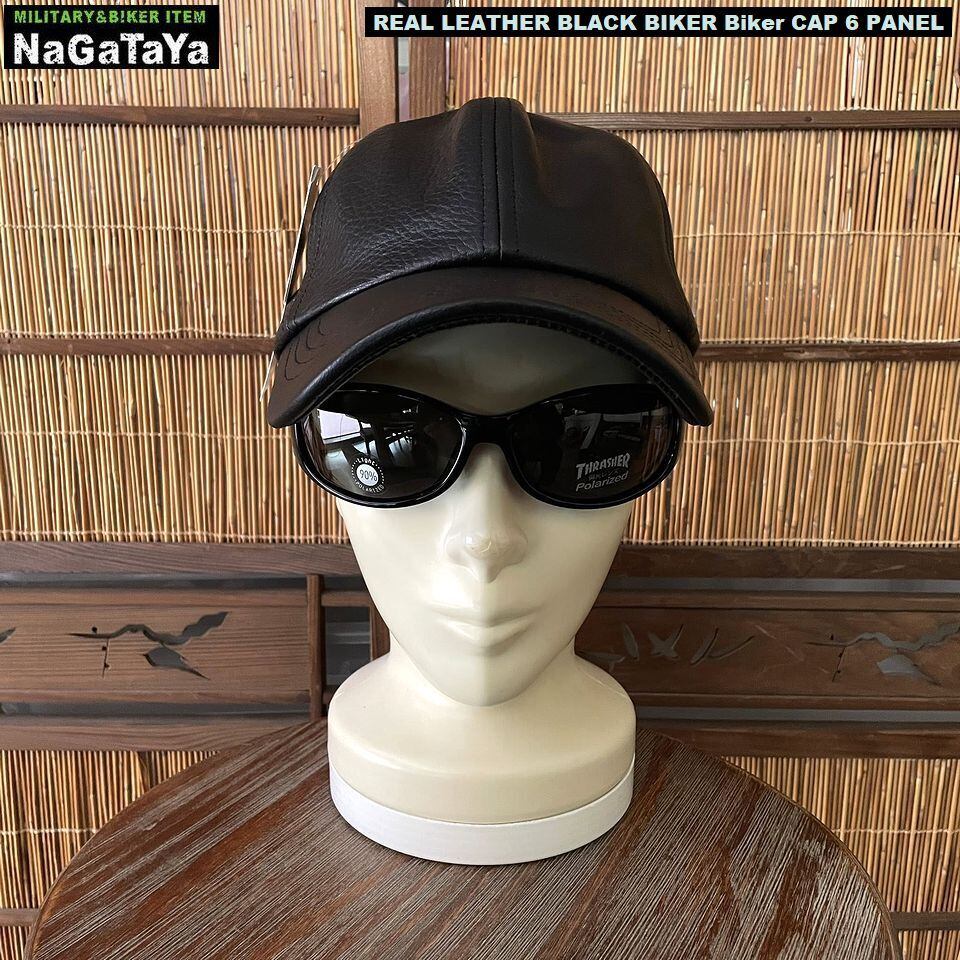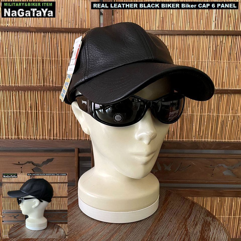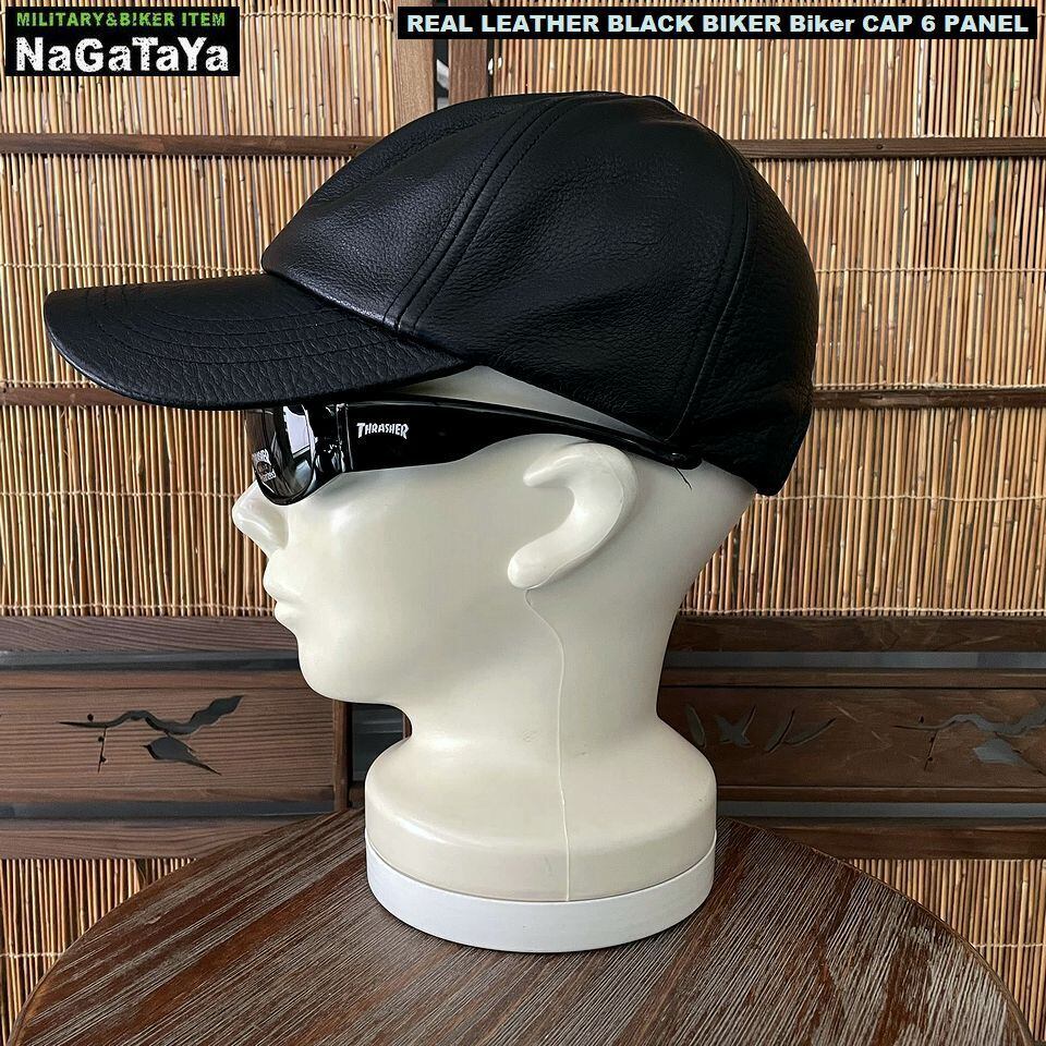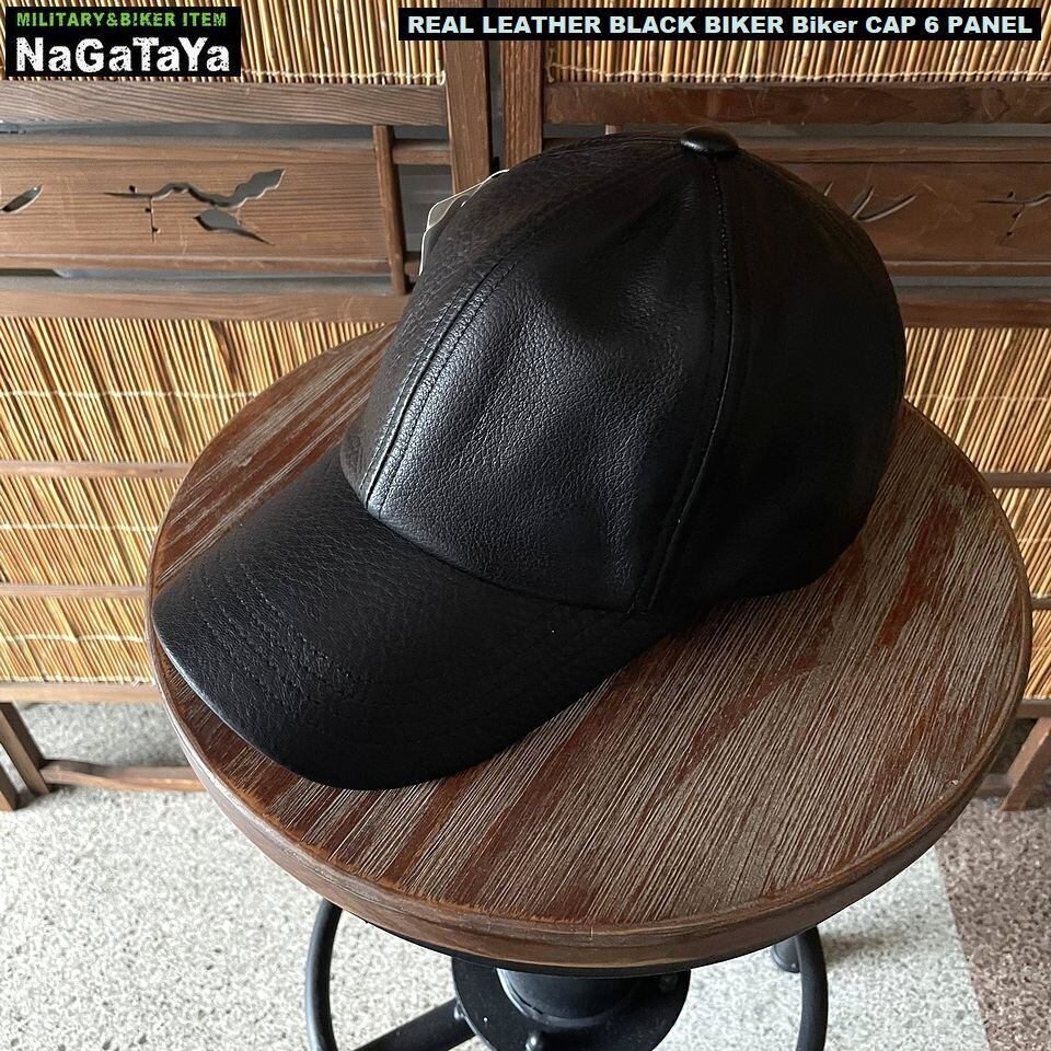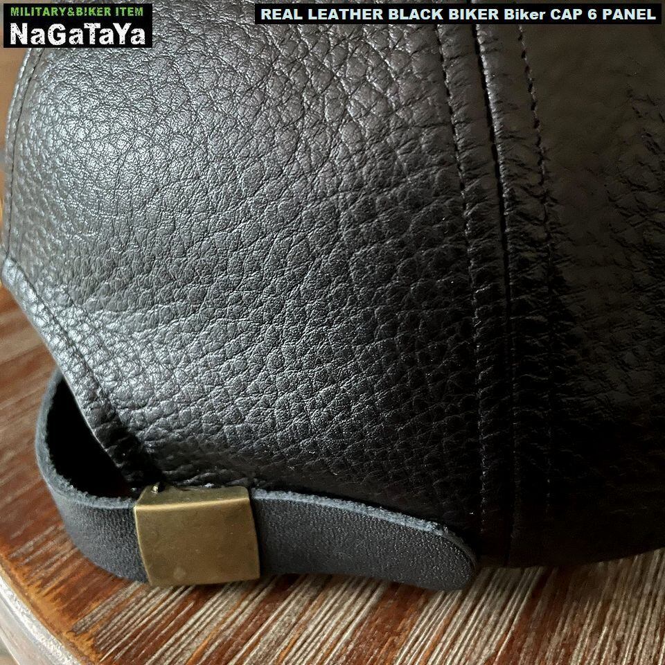 ★本革 BIKER バイカーシックスパネル キャップ リアルレザー ブラック レギュラーサイズ 調節可能 約56~59cm