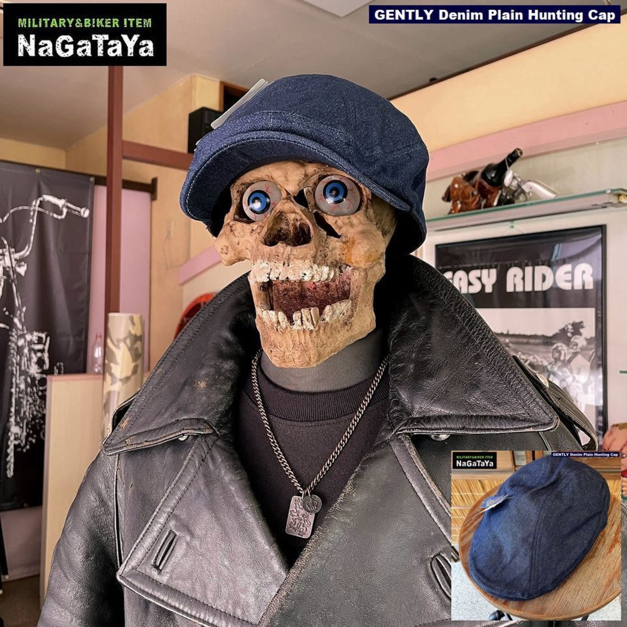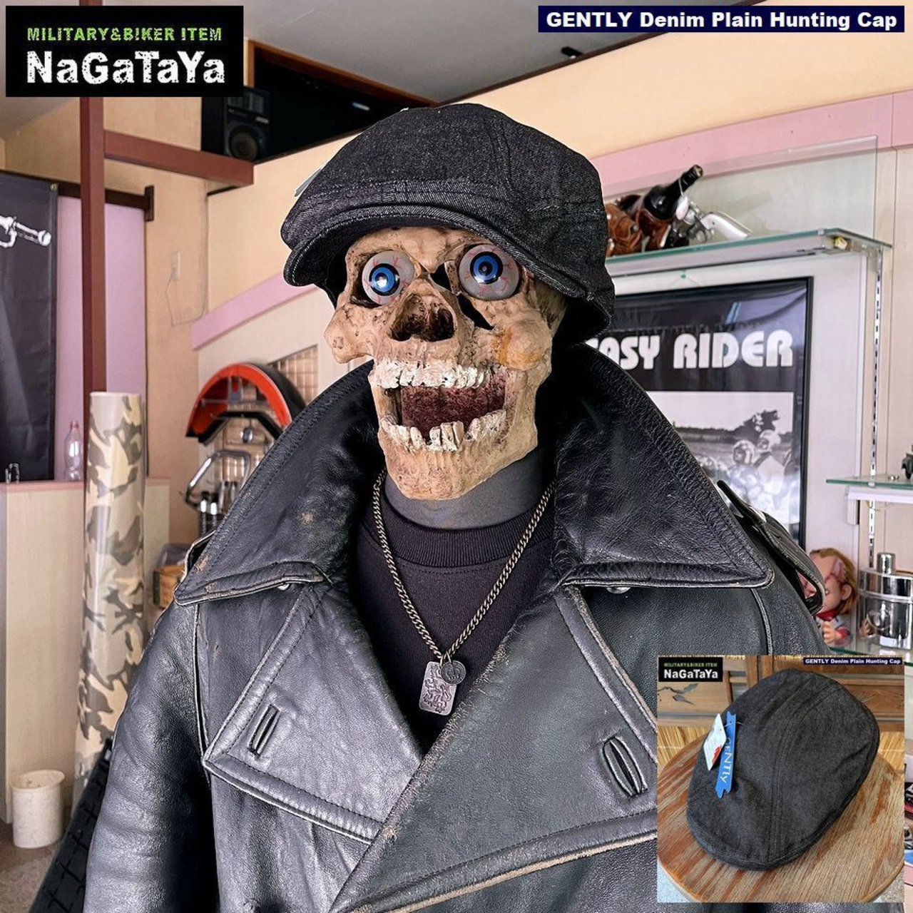 ※バイカー 鳥打帽 古着 アウトドア 蚤の市 GENTLY ハンチング デニム コットン素材 オールシーズン メンズファッション 通販 カジュアルスタイル おしゃれ