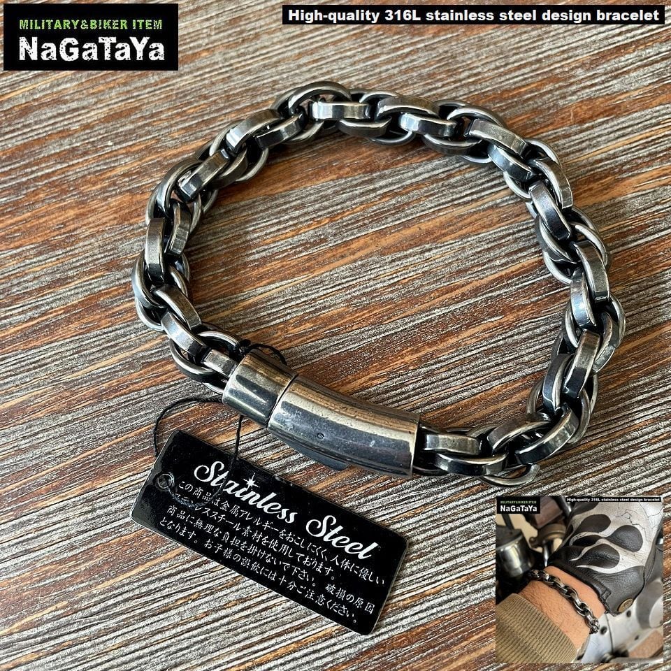 ★ステンレス デザインブレスレット ハイクオリティ 316L BIKERジュエリー HQSB-001 メンズ アクセサリー