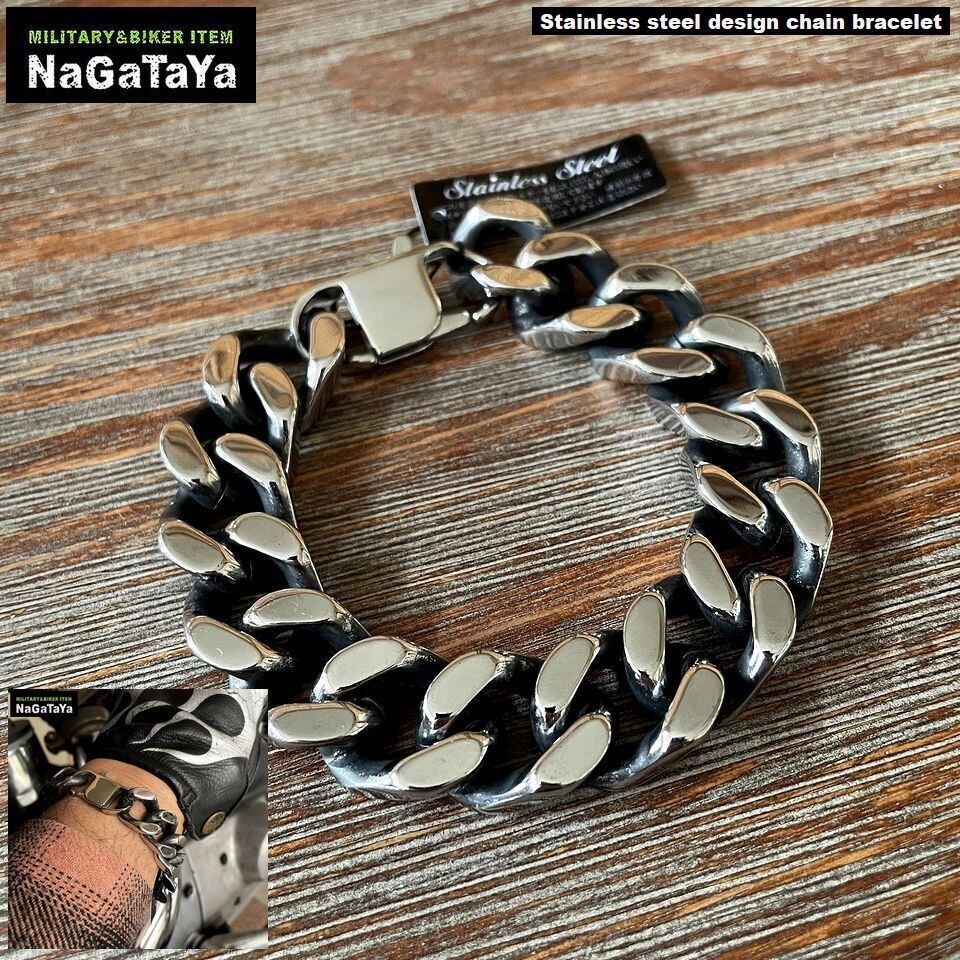 ★BIKER ステンレス デザインチェーンブレスレット CNBR-018 シンプル ボリューム メンズ アクセサリー バイカーアクセサリー