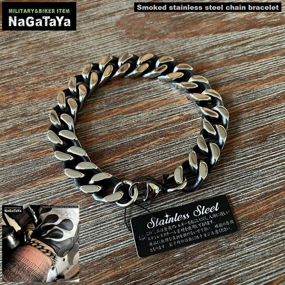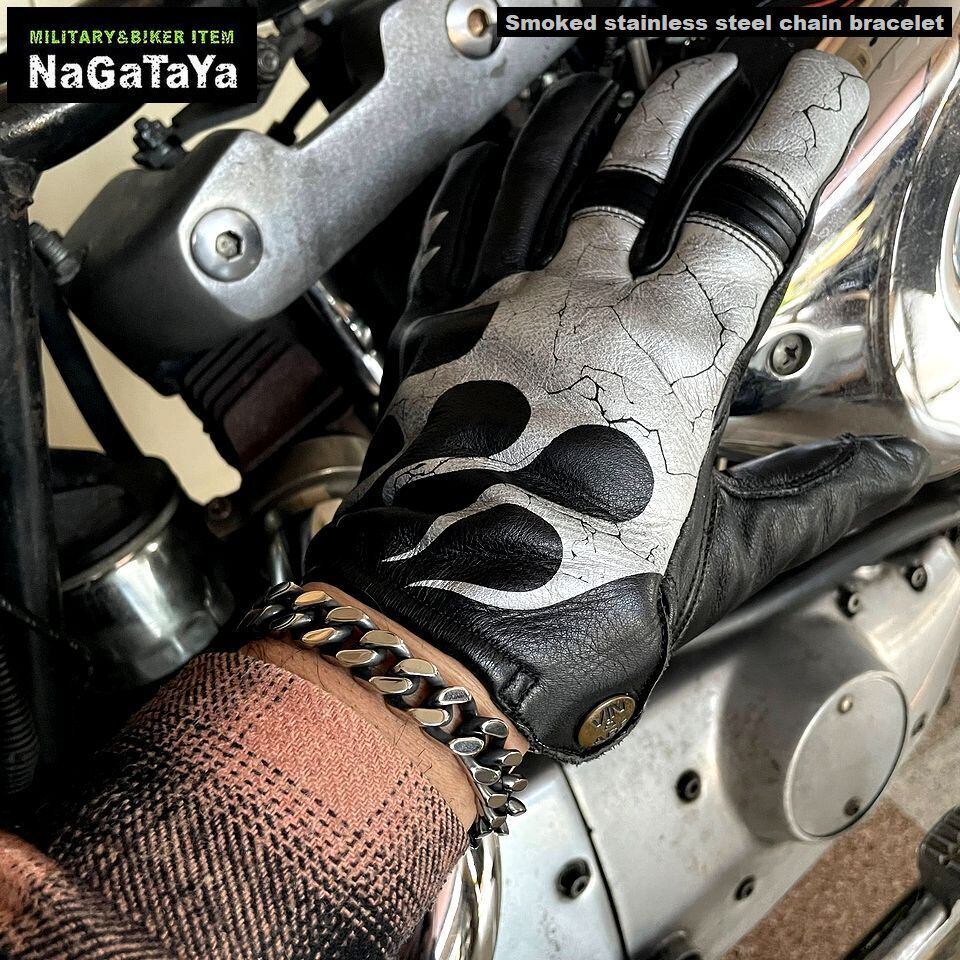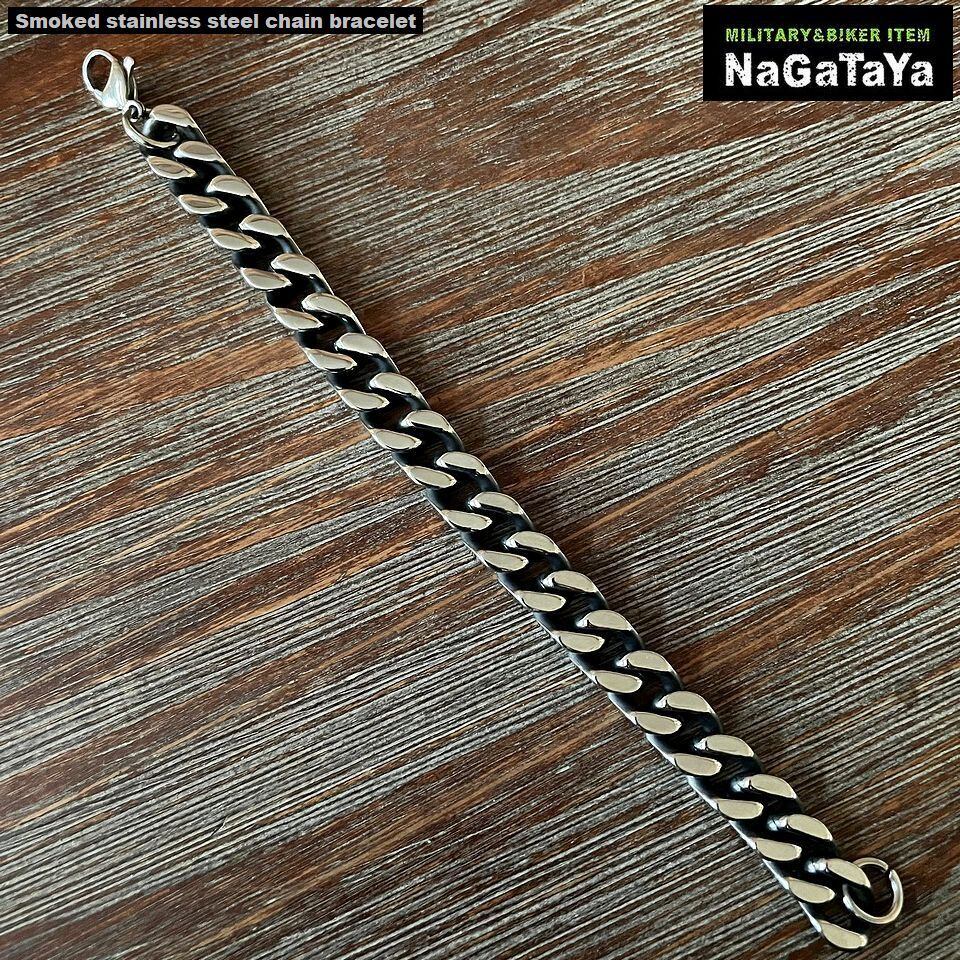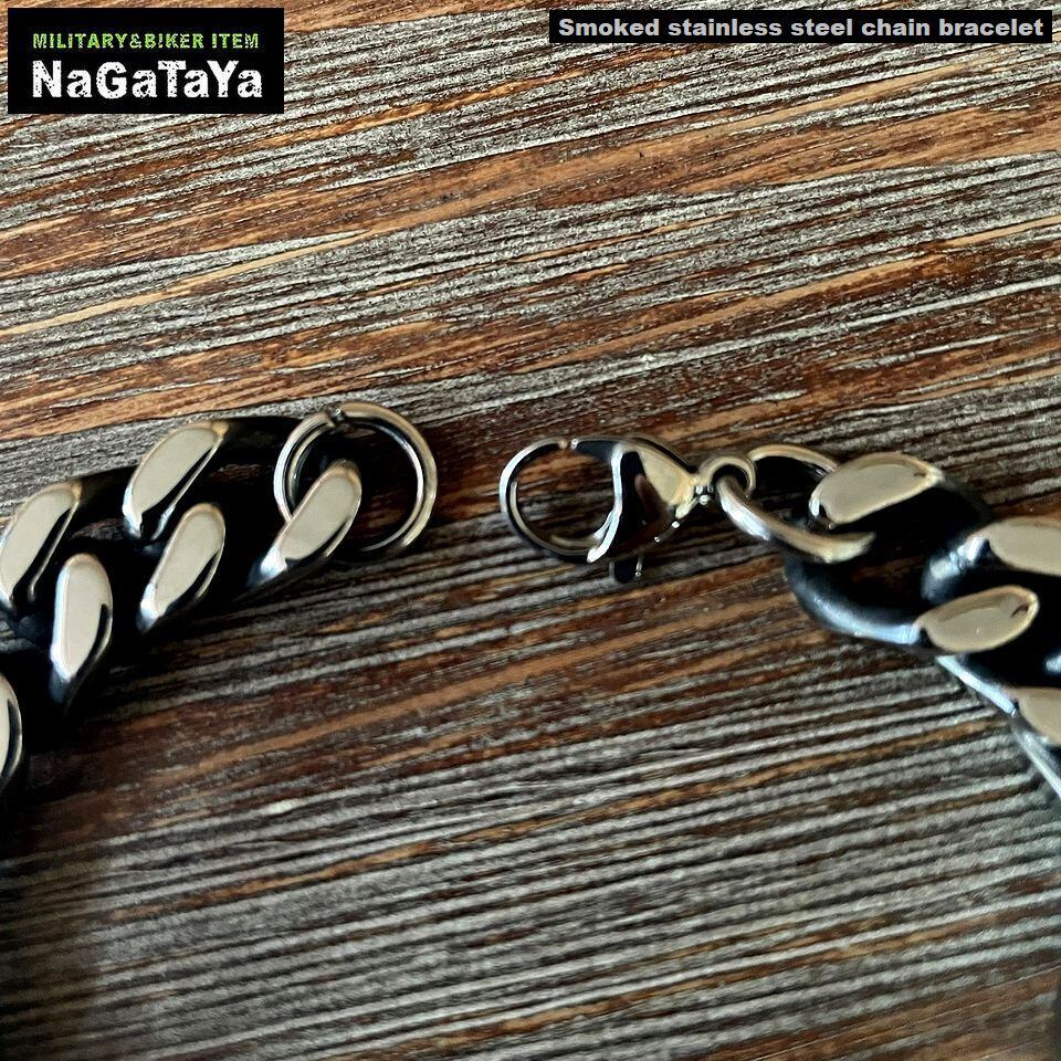 ★BIKER ステンレス チェーンブレスレット12㎜ CNBR-004 燻し キヘイ シンプル メンズ アクセサリー
