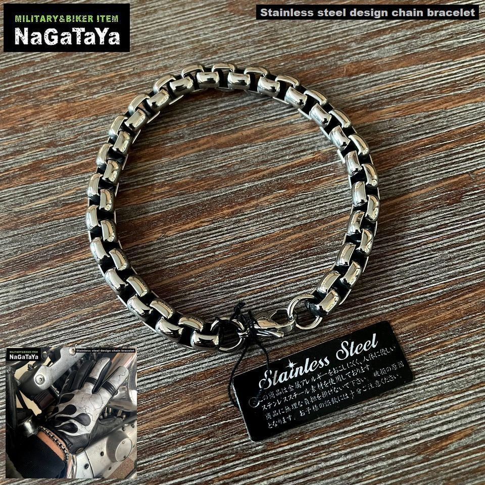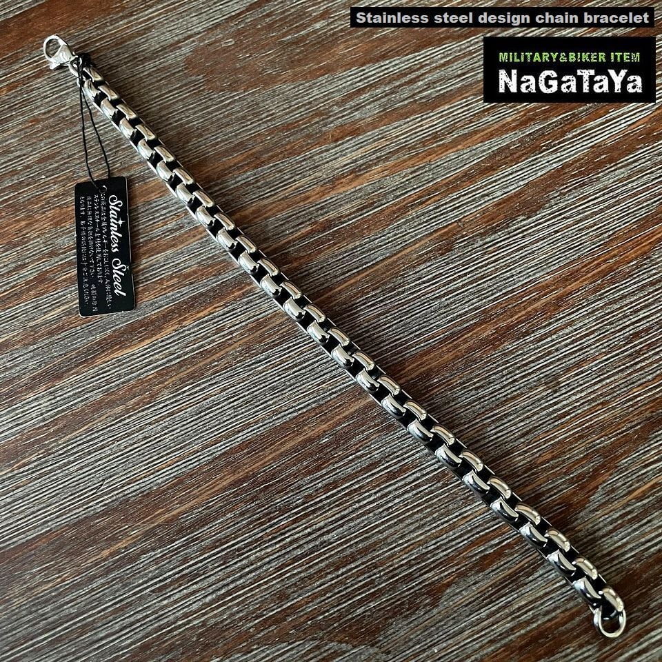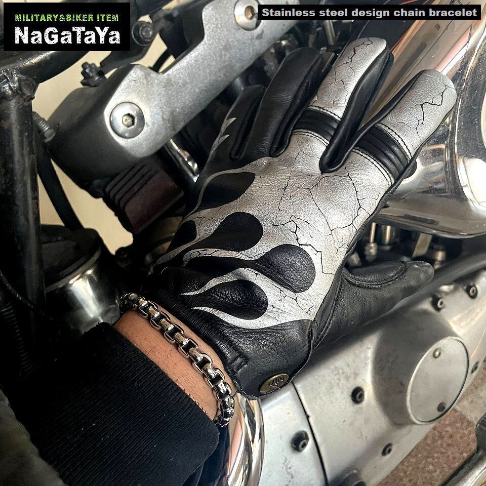 ■金属アレルギーを起こしにくく人体に優しいステンレススチール素材を使用したチェーンブレスレットです。重量感のあるチェーンデザインが1個付けでも腕周りで十分な存在感を放ちます。汗をかきやすいあたたかい時期でも気にせず着用できメンテナンスもかんたんで輝きを維持しやすいステンレススチール素材です。バイカー系、ロック系に人気のデザインです。