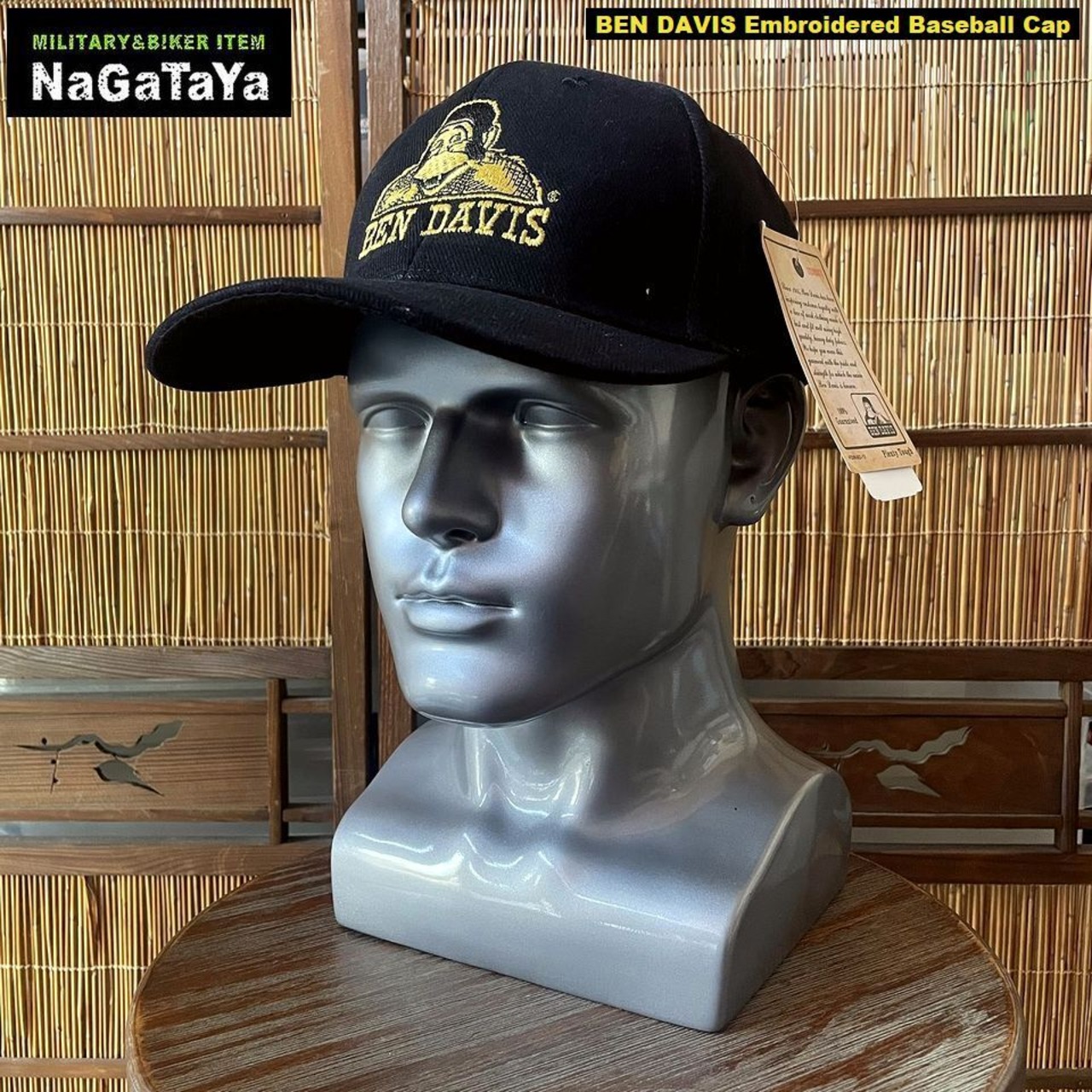 ★BEN DAVIS ベンデイビス 刺繍 ベースボールキャップ Embroidered Baseball Cap ブラック×ゴールド フリーサイズ