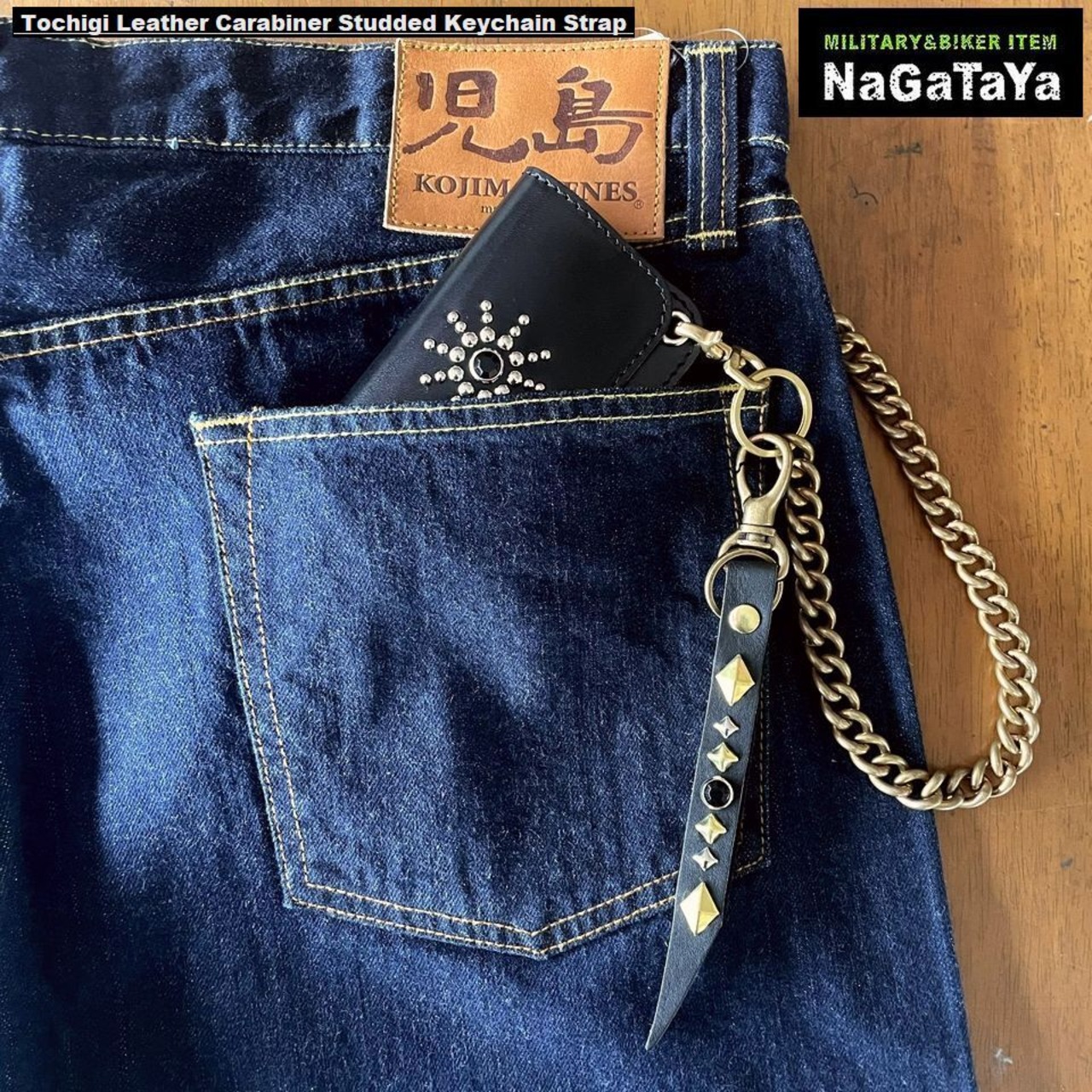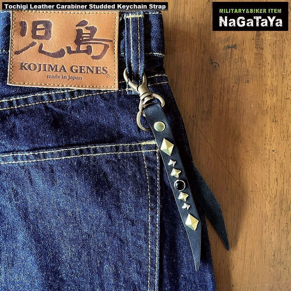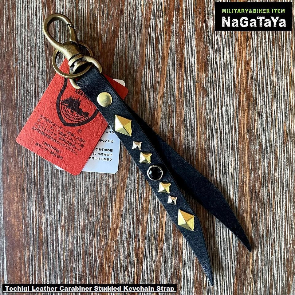 ■素材・成分:革:牛革(栃木レザー) スタッズ:真鍮 カラビナフック:合金 リング:鉄