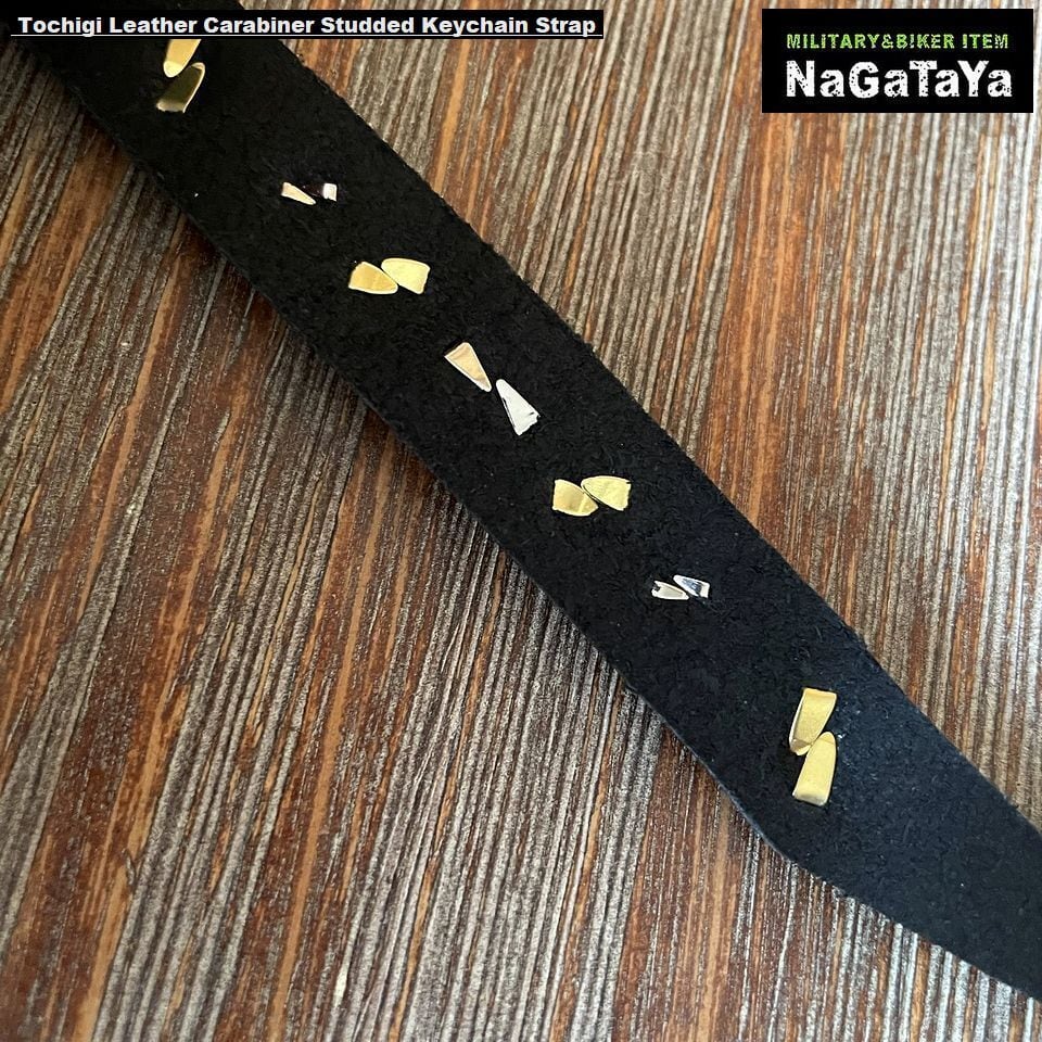 ★栃木レザースタッズキーホルダー キーリング カラビナ ブラック×ゴールド オイルバケッタ 日本製 バイカーギア ホットロッド◎注意:レザースタッズキーホルダー以外は別売りとなります。