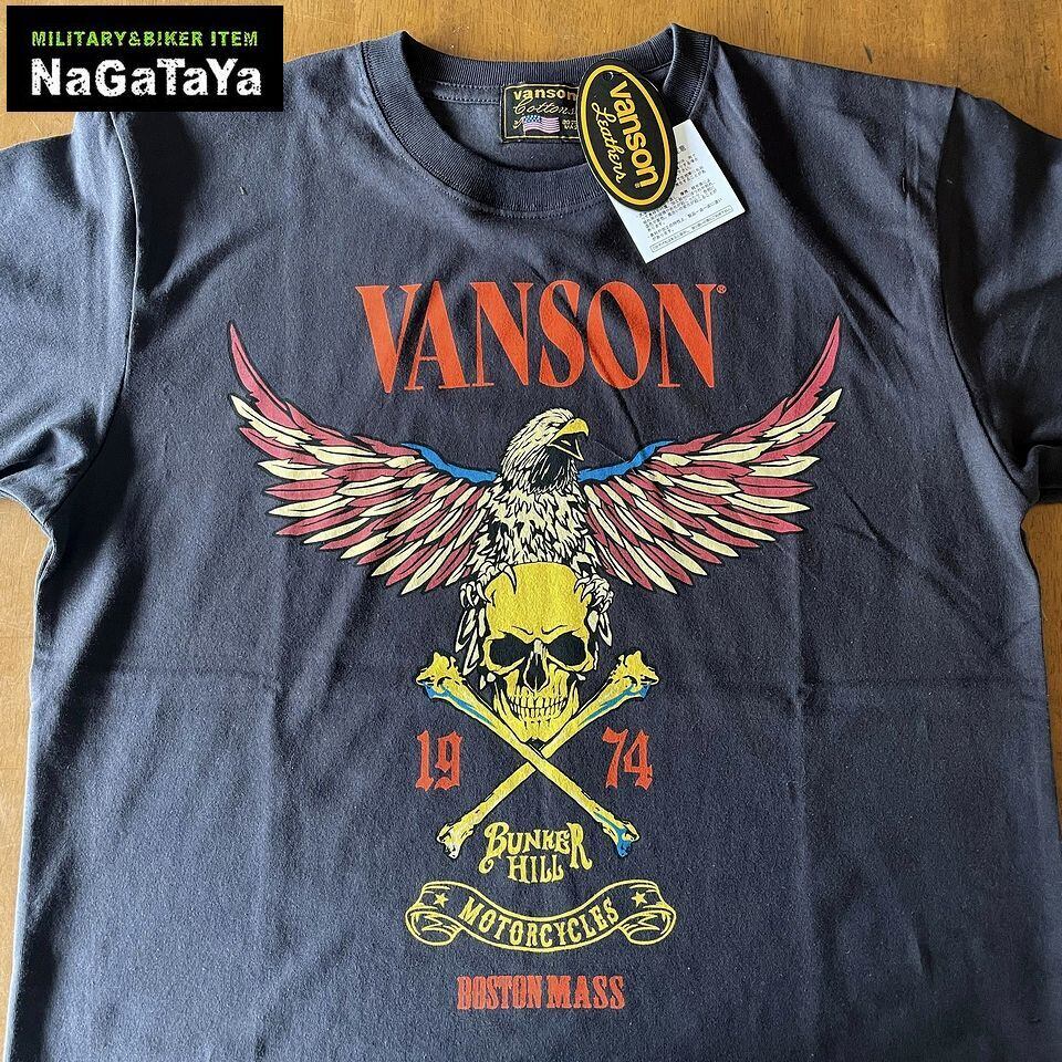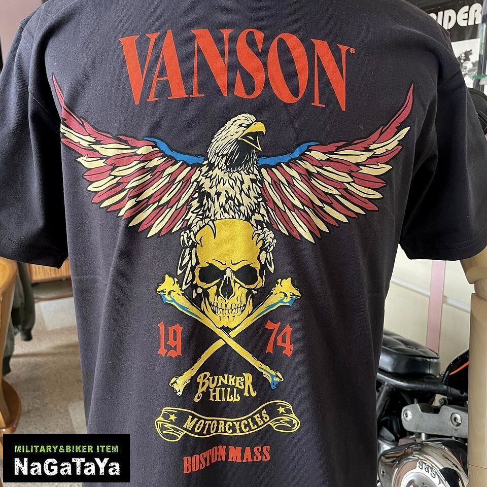 ★VANSON バンソン スカルイーグル 半袖Tシャツ 天竺半袖TEE 墨黒 ブラック NVST-2614 バイカー トップス メンズ