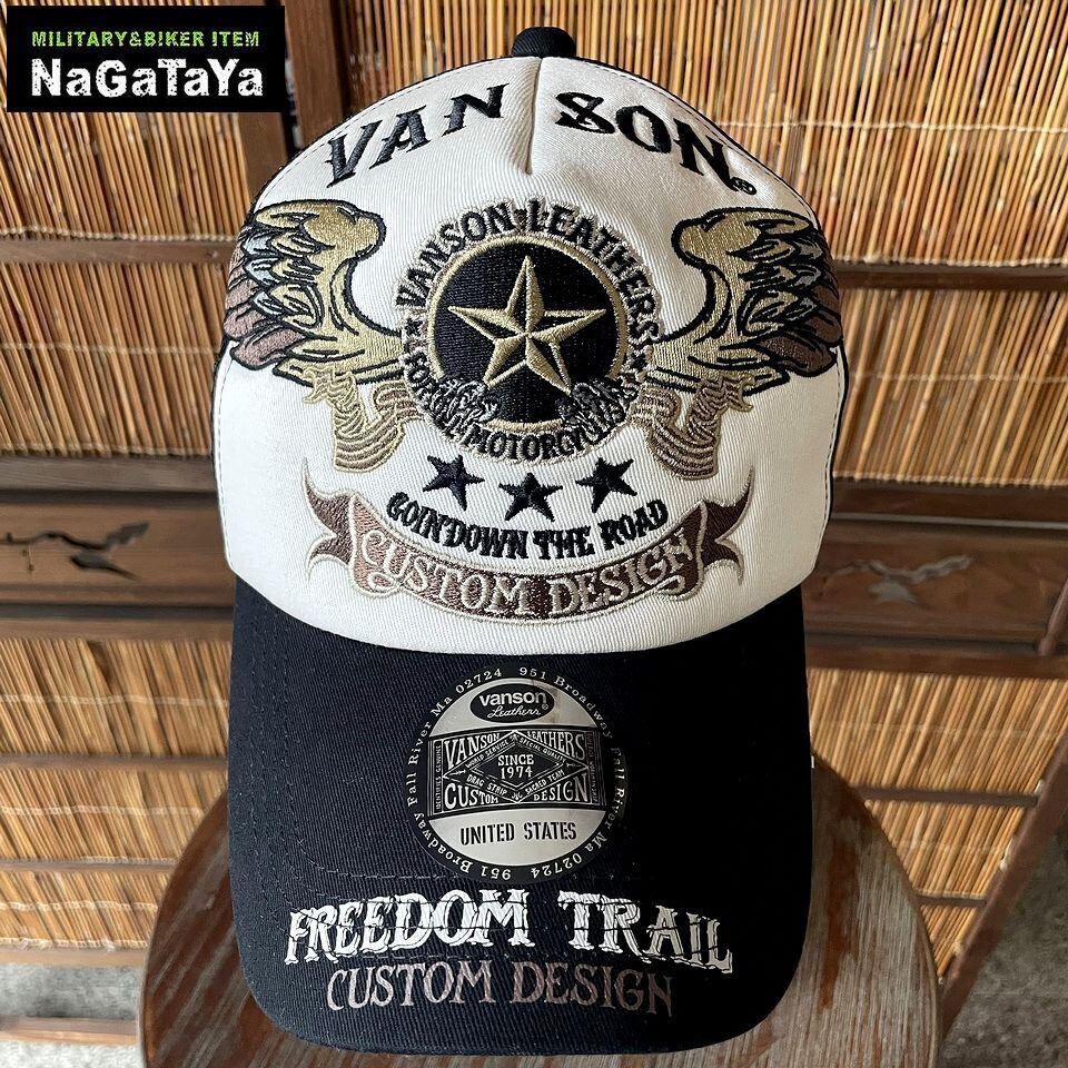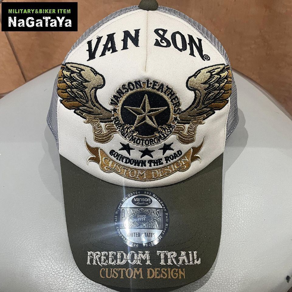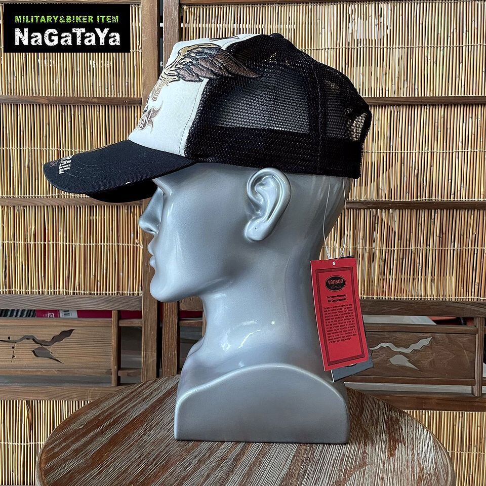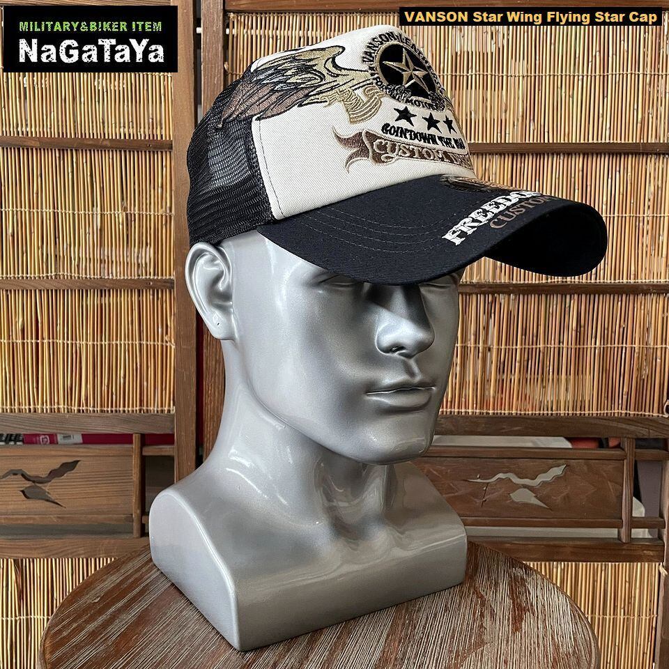 ★VANSON バンソン スター ウイング フライングスター 刺繍 コットン ツイル メッシュキャップ フリーサイズ 帽子 メンズ NVCP-2601