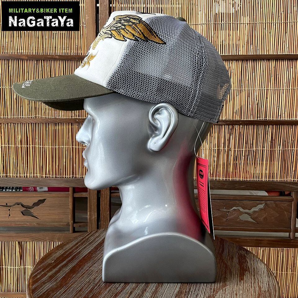 ■トレードマークでもあるフライングスターをメインにした、コットンツイル地のメッシュキャップです。フロント部分にスターとフェザー、ロゴを刺繍で落とし込んだ、存在感あるカッコいいデザイン。バックにもロゴ刺繍、ツバ部分にもレタリングやステッカーをアクセントにした豪華なディティールに。バイカーなコーディーネートのプラス1アイテムや、プレゼントにもオススメのアイテムです。
