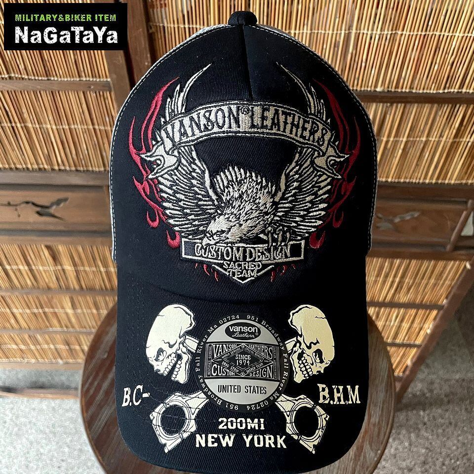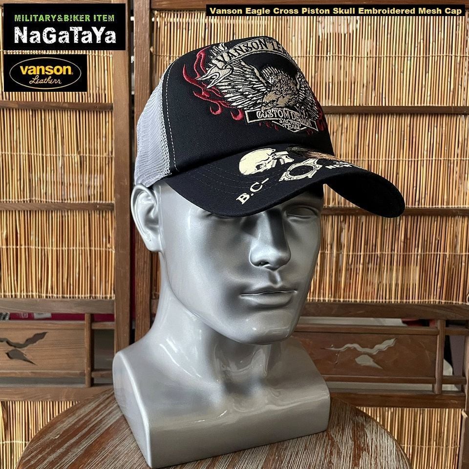 ★VANSON バンソン イーグル クロスピストン スカル刺繍 メッシュキャップ コットン ツイル フリーサイズ 帽子 メンズ NVCP-2603