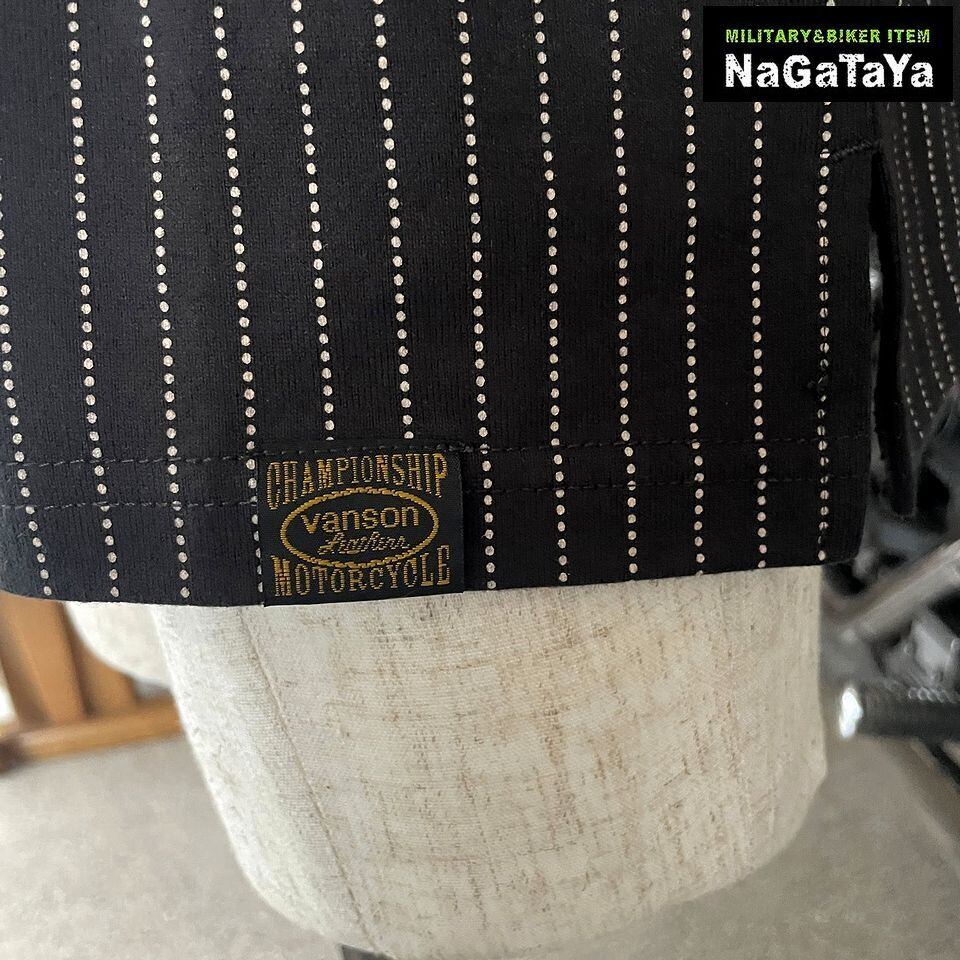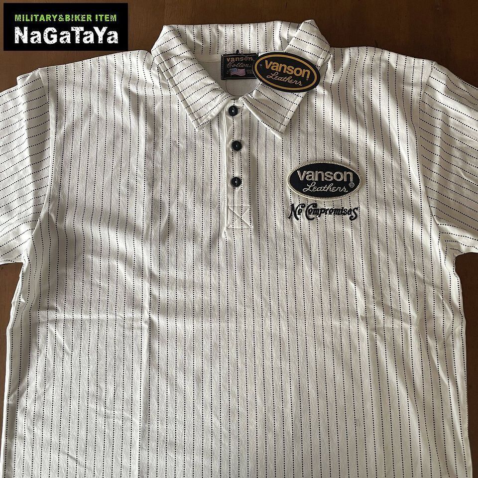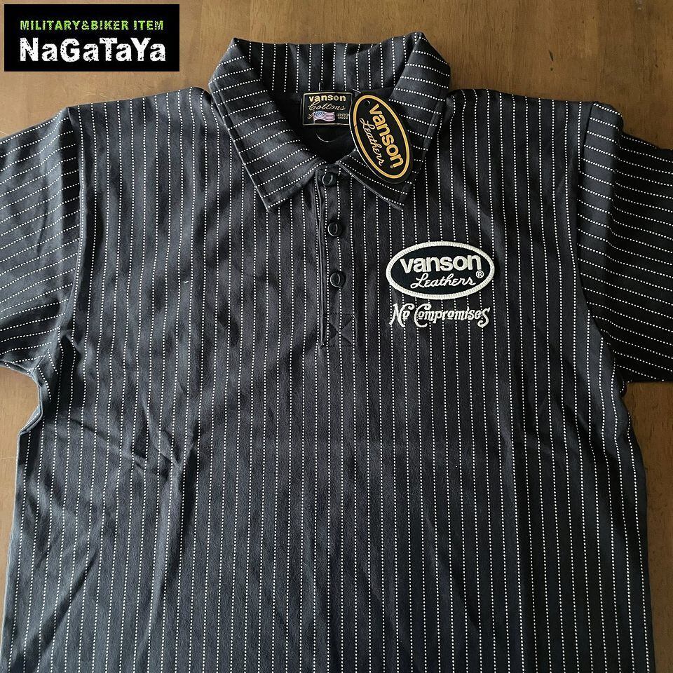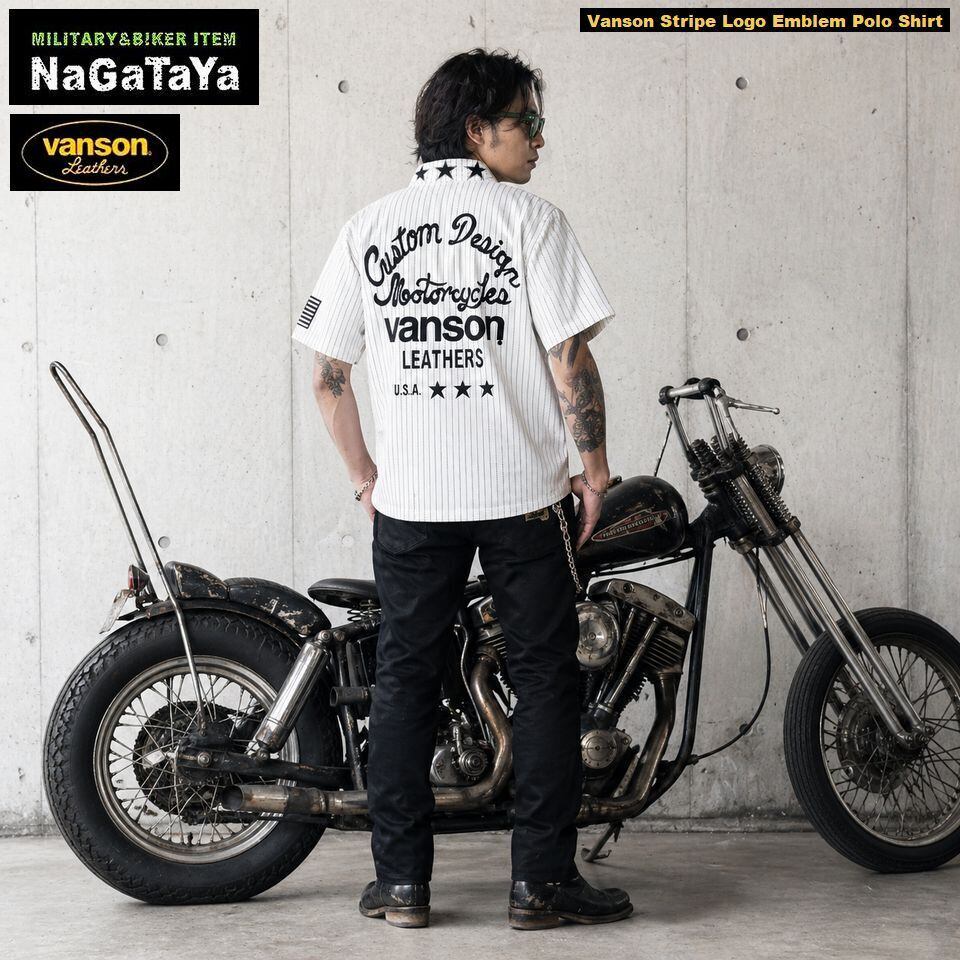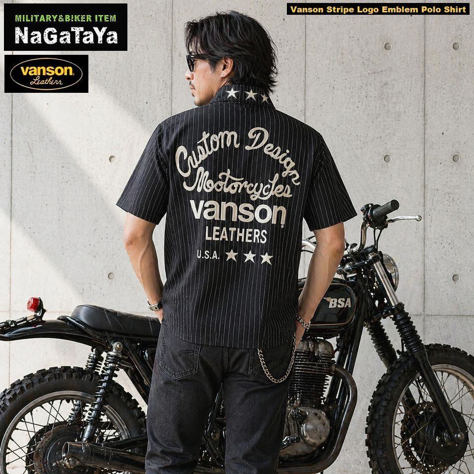 ★VANSON バンソン ストライプ ロゴエンブレム 刺繍 天竺 半袖ポロシャツ メンズ NVPS-2604 バイカーウェア