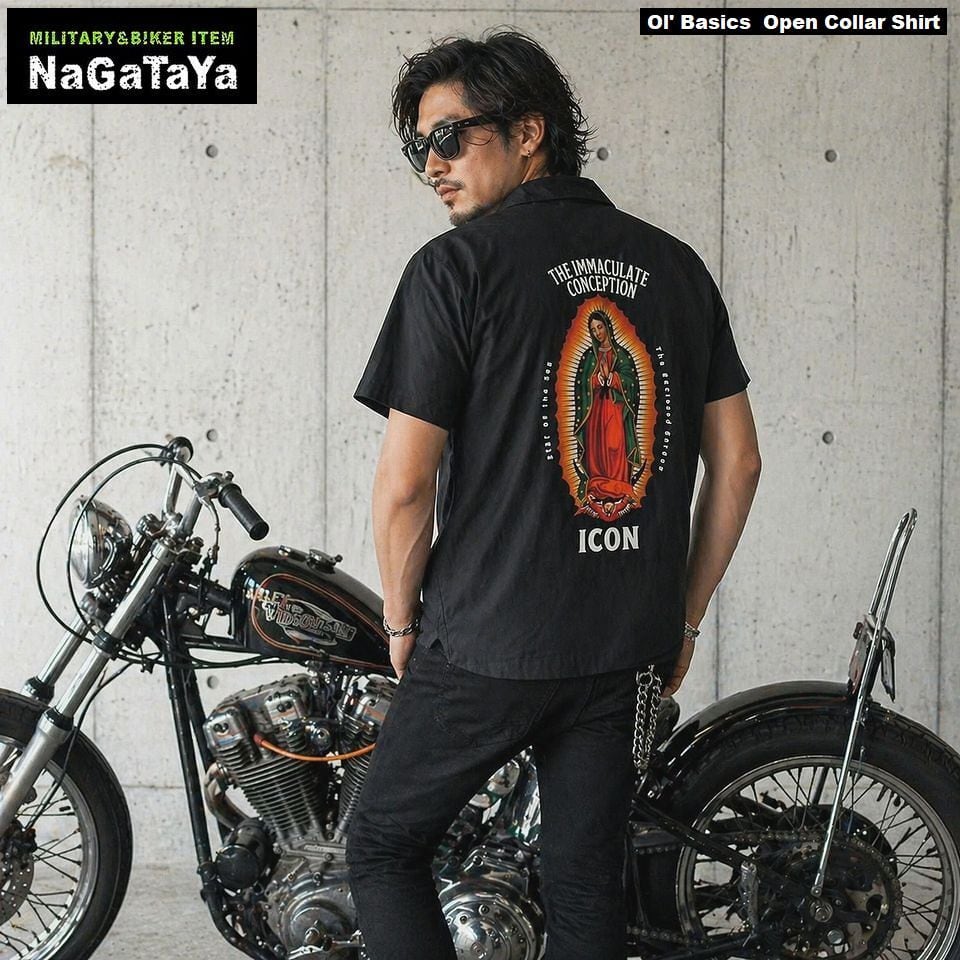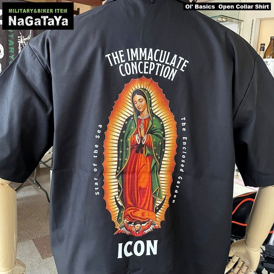 オール・ベーシックス Ol' Basics オ―プンカラーシャツ メンズ ユニセックス グアダルーペの聖母 マリア バックプリント アメカジ 開襟シャツ
