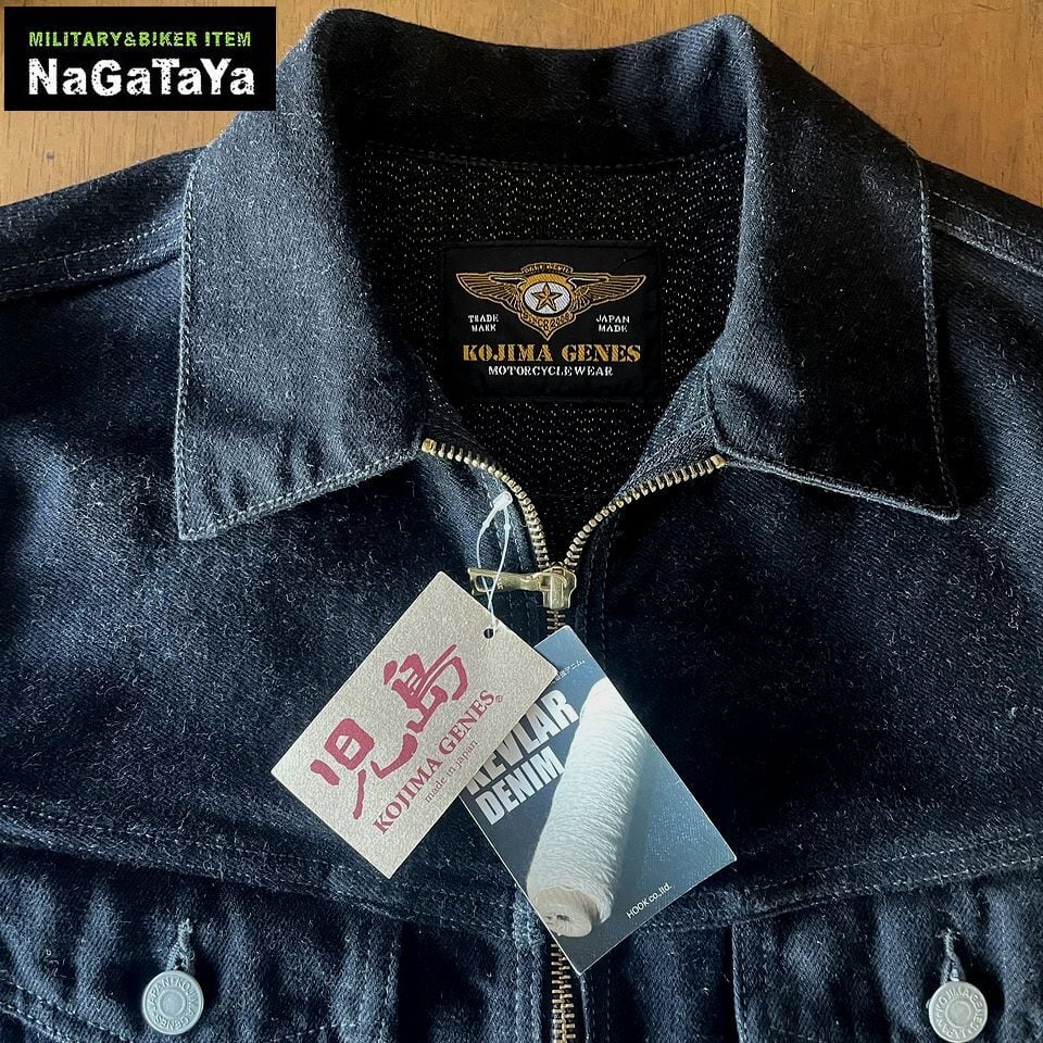 ■ケブラーデニムを使用した3rdデニムジャケットとライダースがミックスしたデニムジャケット。防弾チョッキなどにも使用される高機能繊維ケブラーをブラックデニムに織り込んだシックな仕上がりのハイスペックブラックデニムを使用。
