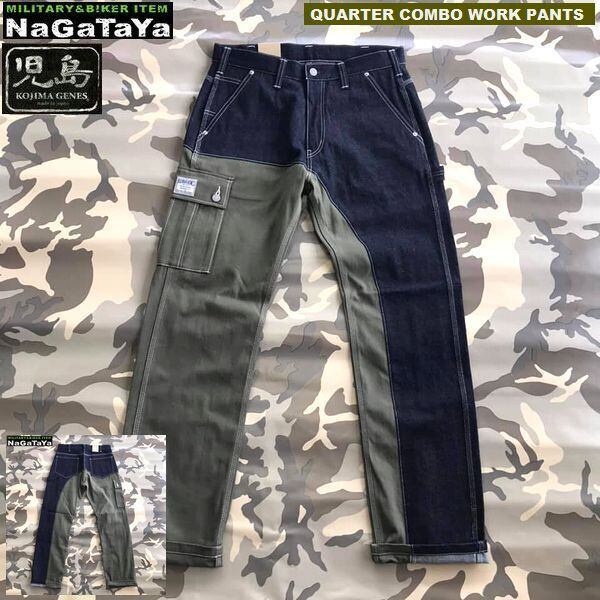 児島ジーンズ KOJIMA GENES クォーターコンボ ワークパンツ rnb1117 インディゴ×カーキ MADE IN JAPAN
