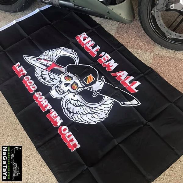 アメリカ軍 KEEL'EM ALL キル エム オール やつらを皆殺しにしろ!! ブラックベレー帽 ポリエステル フラッグ 旗