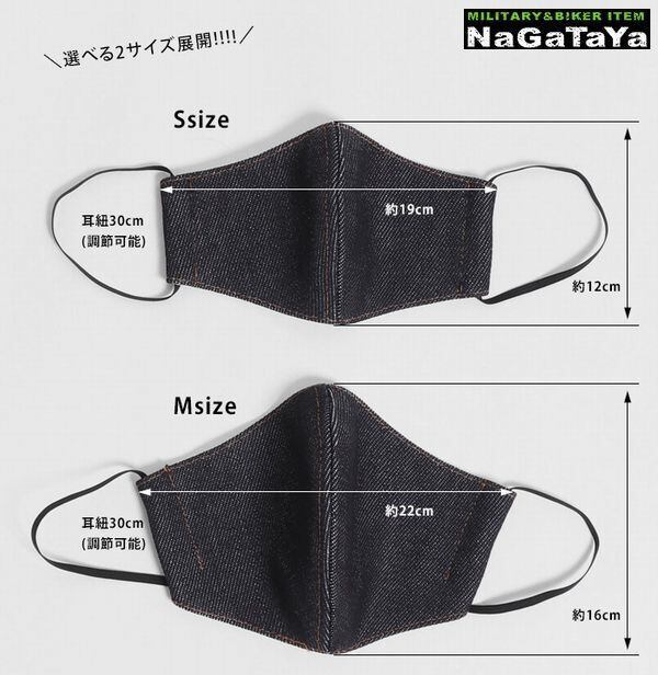 ■21ozの厚みのあるデニムを使用したフェイスガードマスク。 色落ちが期待出来るインディゴデニム 21オンス生地。 バイクのフェイスガードとしても使用できる極厚21oz生地を使用。 両側の紐は長さ調節可能。穴に通して使うタイプなのでお手持ちの耳紐に付け替えることも可能です。