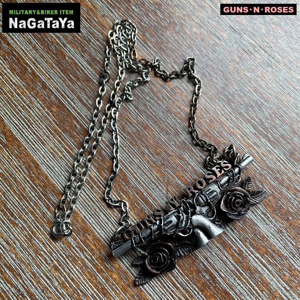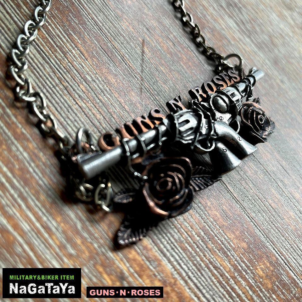 ガンズ ライセンス商品 GANS・N・ROSES ガンズ・アンド・ローゼズ ネックレス ガン&ローズ チェーン60センチ シルバーニッケル イギリス製