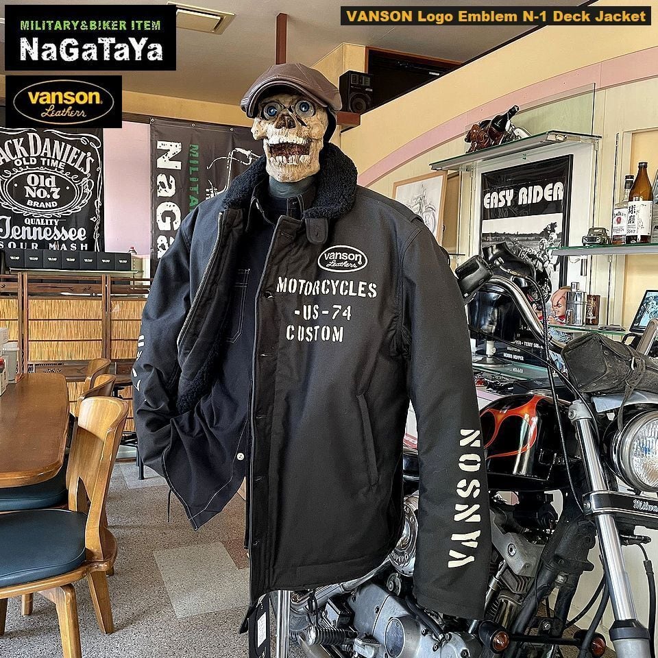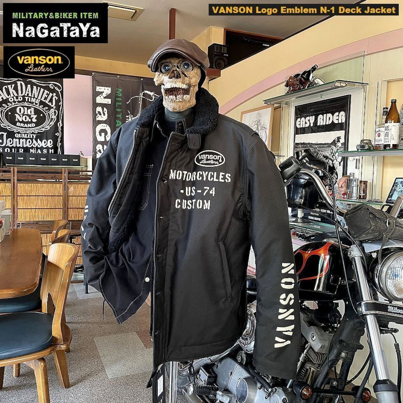 バンソン VANSON ロゴエンブレム刺繍 N-1 デッキジャケット ブラック 黒 NVJK-2105 XXLサイズ モーターサイクルウェア アウトローMC BIKER