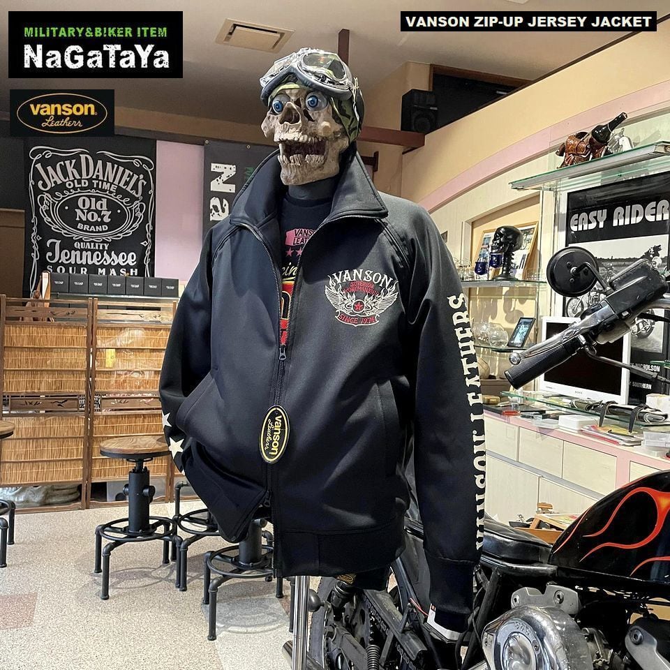 バンソン VANSON ウイング ロゴ刺繍 ジップアップ ジャージ トラックジャケット ブラック NVSZ-2201 バイカーウェア