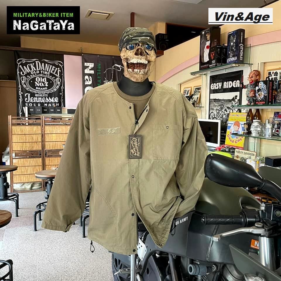 ■ヴィン&エイジの、ダボシャツをデザインソースにフロントジッパー仕様にした9分丈袖のダボシャツブルゾン。 薄手で張りのあるコットン×ナイロン素材を採用し、春先のライディングシーズンに最適。 袖口はボタンにて、裾はドローコードにて、サイズ調整可能。