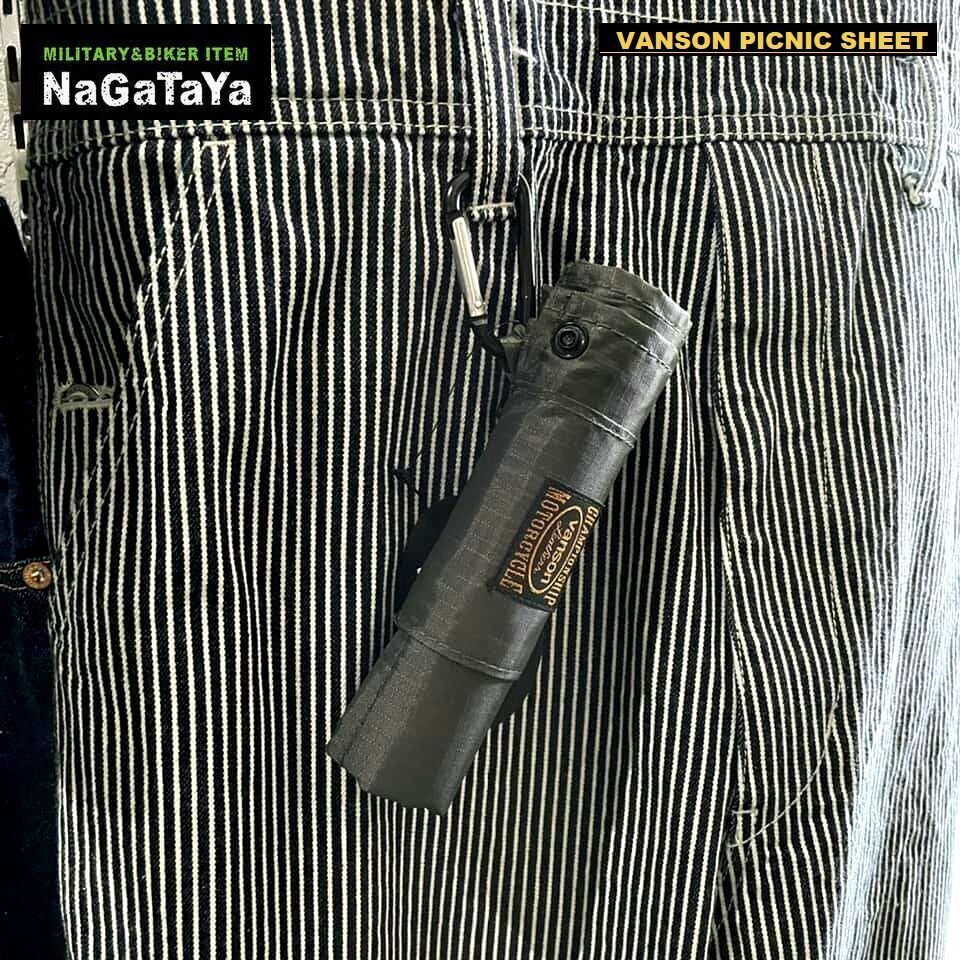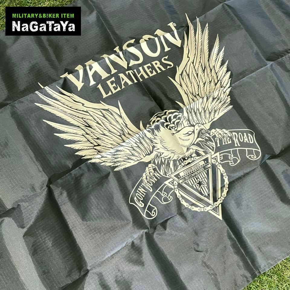 ■VANSON バンソン フライングイーグル ロゴプリント レジャーシート オリーブ カラビナフック付き NVSH-2202 ソロキャンプ ブッシュクラフト