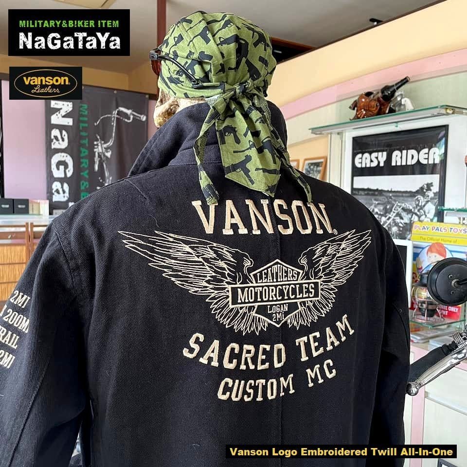■バンソンのオールインワンシリーズ。 バックとフロントにロゴ刺繍を落としこんだ、COOLな仕上がりとなっています。 タフなスツイル生地で着やすい造りで、クールなバイカーにイチオシの仕上がりです。