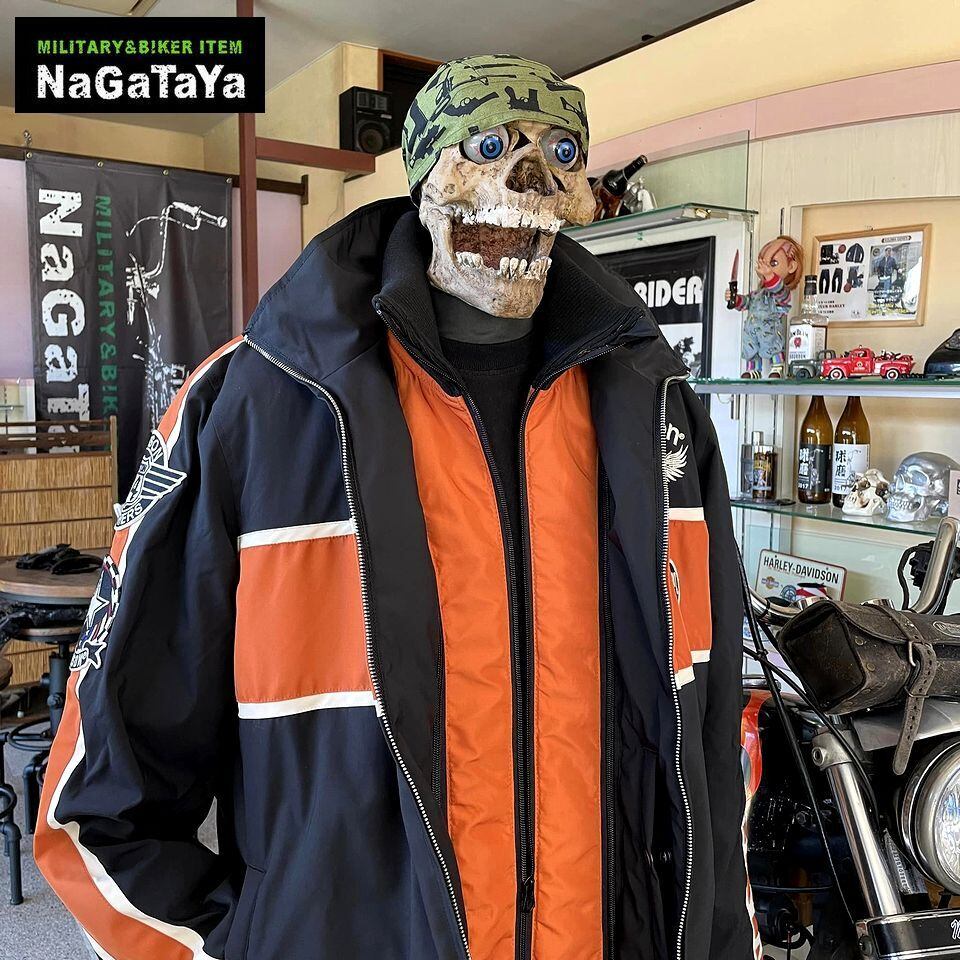 ★バンソン VANSON ロゴ刺繍 中綿入り ナイロン レーサージャケット ブラック×オレンジ NVJK-2207 メンズ バイク バイカー アウター