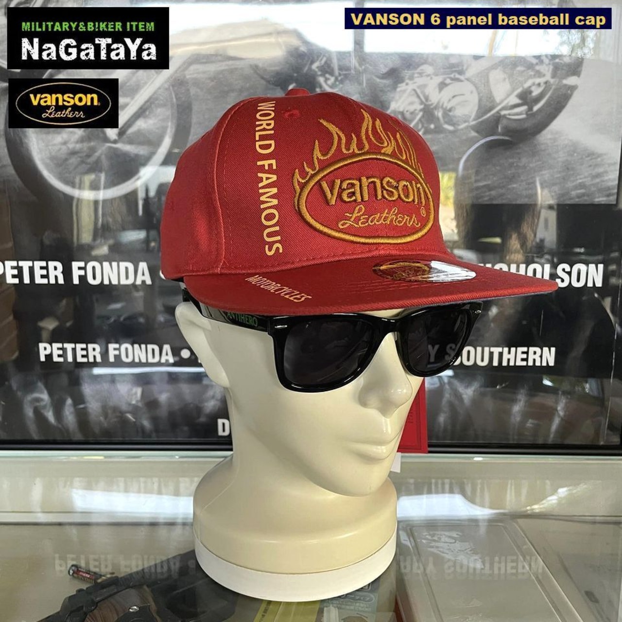 ★VANSON バンソン オーバルロゴ刺繍 ツイル6パネル ベースボールキャップ NVCP-2304 オレンジ 帽子 メンズ バイカー バイク