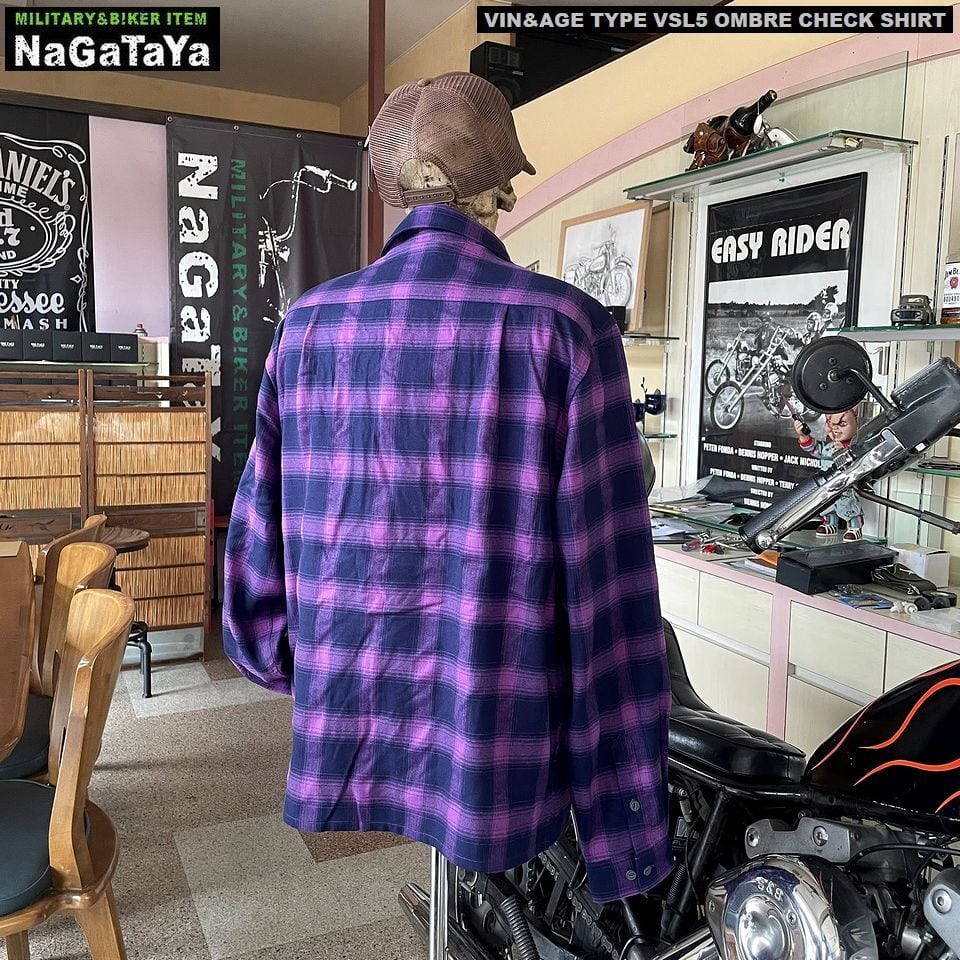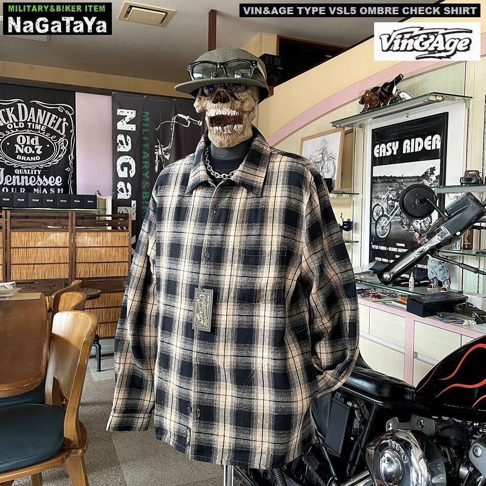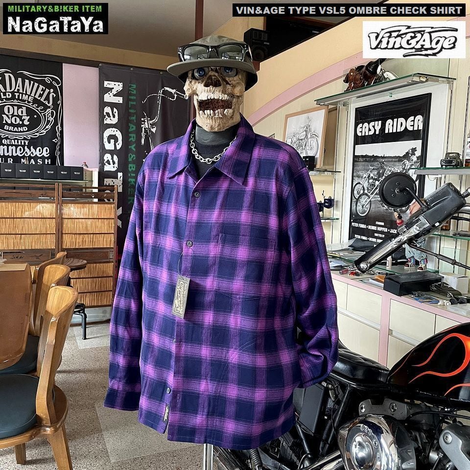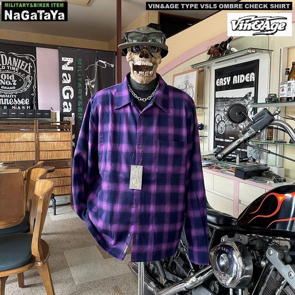 ★Vin&Age ビンアンドエイジ TYPE VSL5 セミワイド オンブレチェック シャツ サイドポケット付 バイカースタイル