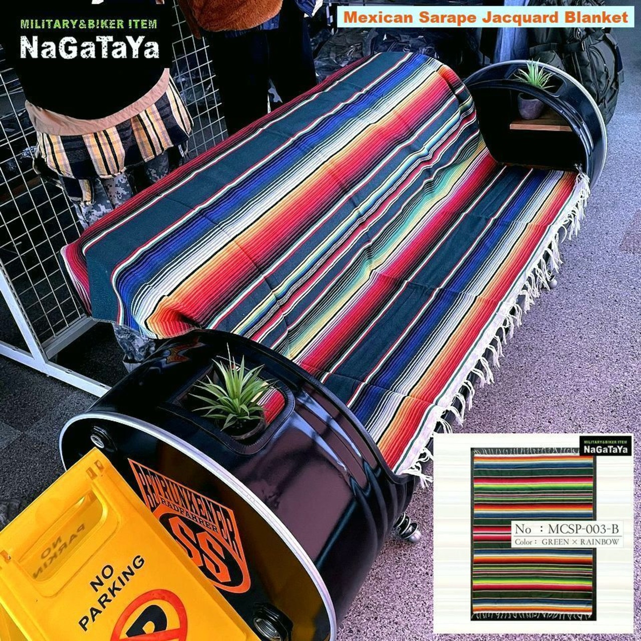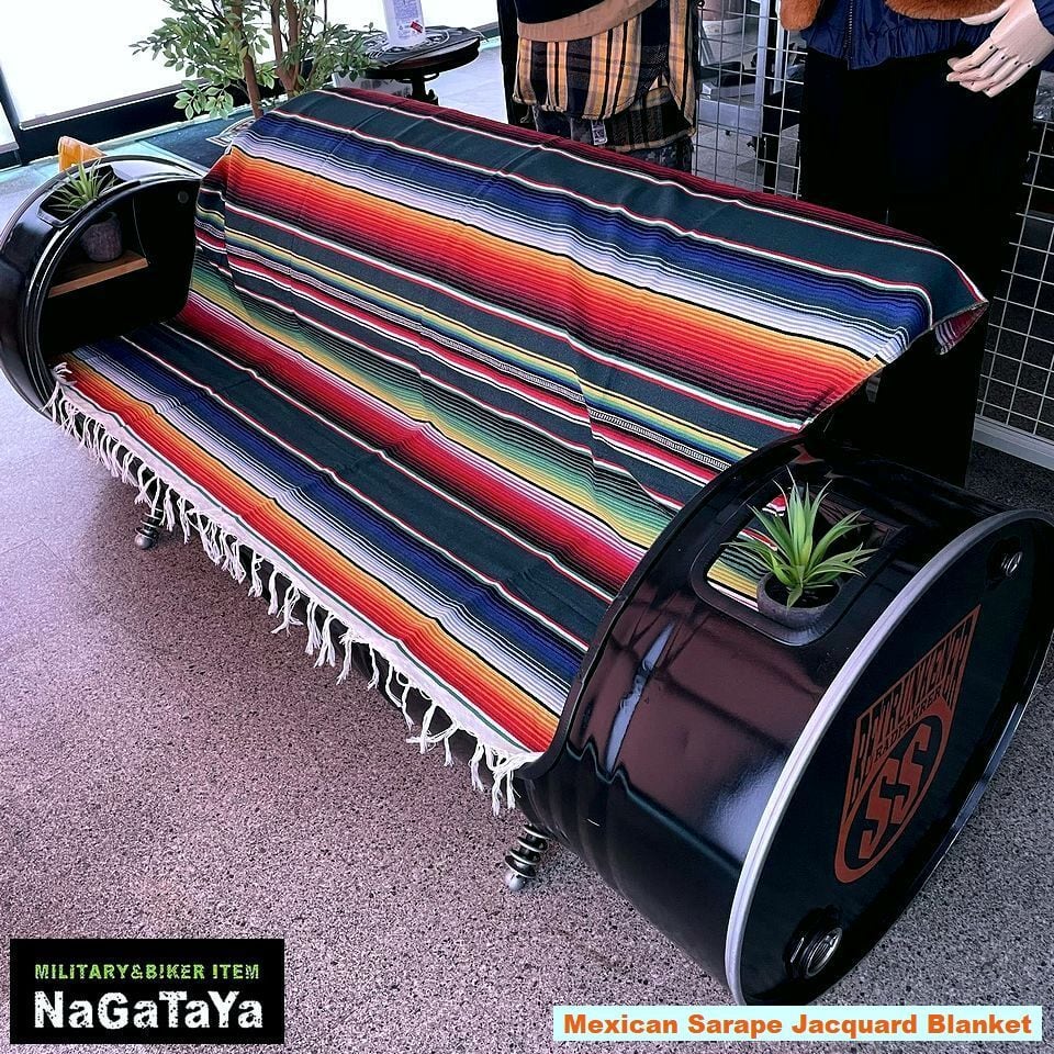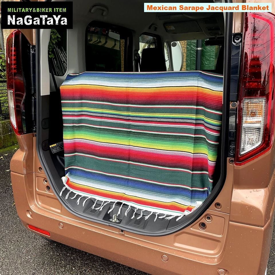 ■メキシカンな雰囲気を気軽に楽しめるカラフルなジャガード織りのブランケットです。やや大きめのサイズ感で、カーペットやラグとしてのご使用はもちろん、テーブルクロスやソファーカバー、車のシートカバーやアウトドア・キャンプの敷物など幅広いシーンで活躍します。素材感は柔らかく肌触りの良い、しっかりと目の詰まった中厚生地。メキシカンラグというとメキシコ国内生産品が一般的ですが、こちらは中国製の為、メキシコ産に見られるような粗い作りや玉(ダマ)も少なく、また独特な香りもなくきれいな仕上がりに感じます。